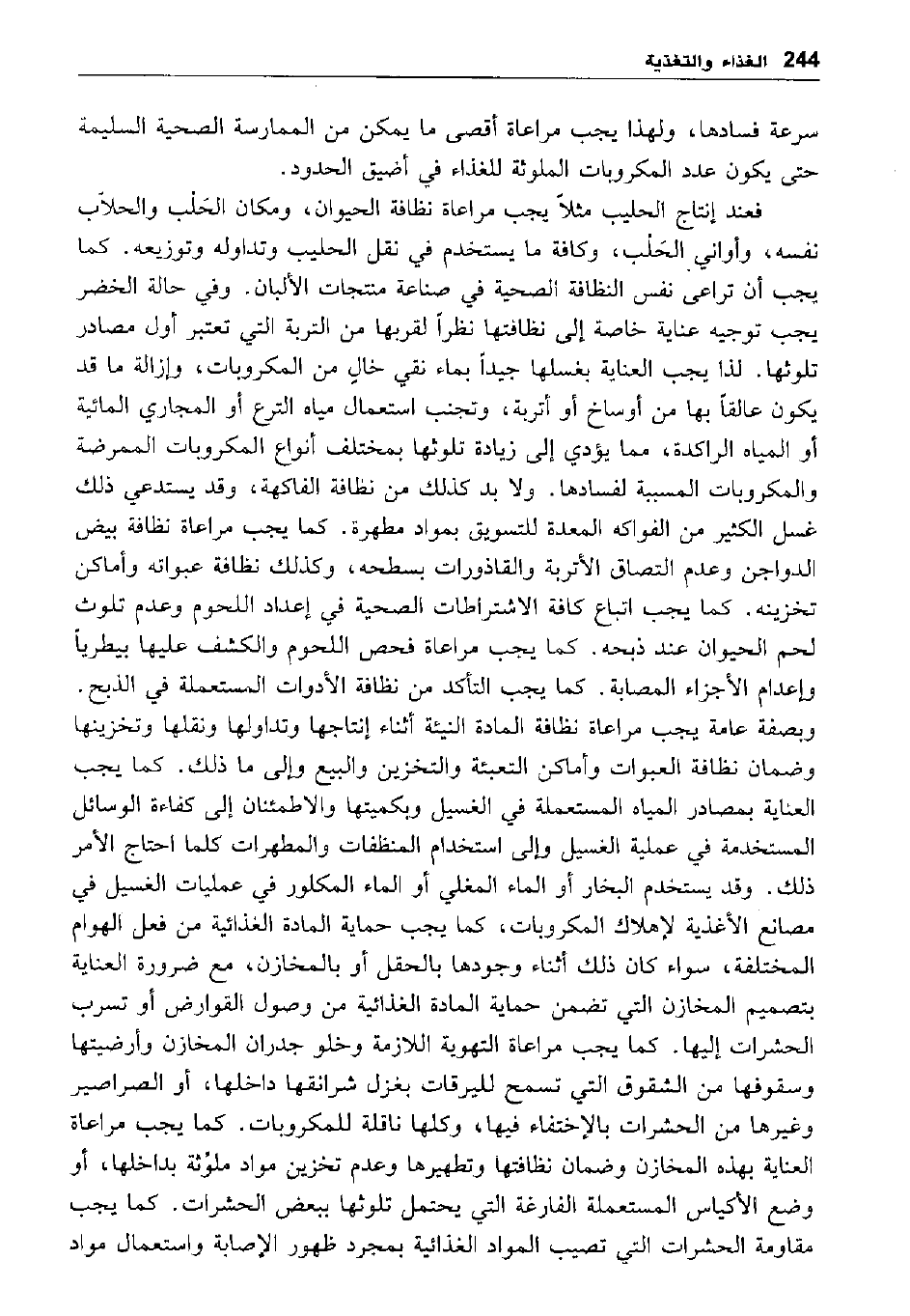 سرعاة فسادها، ولهذا يجب مراعاة أقصى ما يمكن من الممارسة الصحية السليمة حتى يكون عدد المكروبات الملوثة للغذاء في أضيق الحدود.