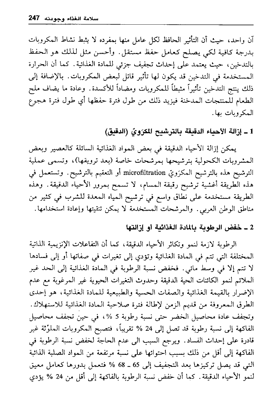 2- خفض الرطوبة بالمادة الغذائية أو إزالتها: