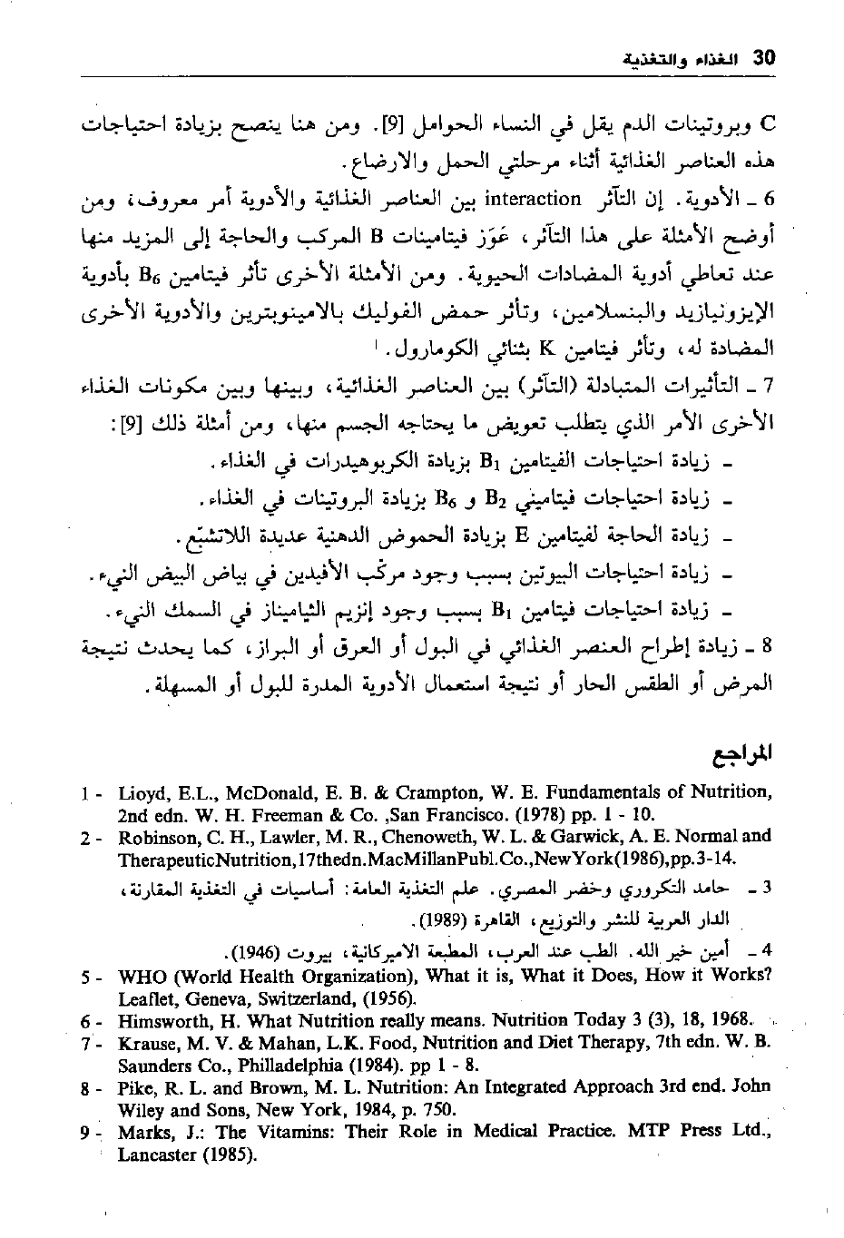 2- Robinson, C.H., Lawler, M.R., Chenoweth, W.L& Farwick, A.E Normal and Therapeutic Nutrition, 17 thedn.MacMillanPubl.Co., New York "1986", pp. 3-14.