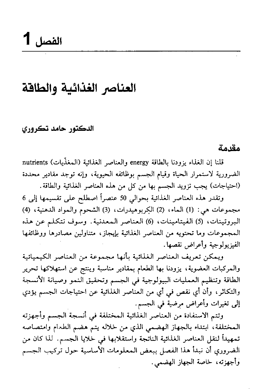 وتتم الاستفادة من العناصر الغذائية المختلفة في أنسجة الجسم وأجهزته المختلفة، ابتداء بالجهاز الهضمي الذي من خلاله يتم هضم الطعام وامتصاصه تمهيدا لنقل العناصر الغذائية الناتجة واستقلابها في خلايا الجسم. لذا كان من الضروري أن نبدأ هذا الفصل ببعض المعلومات الأساسية حول تركيب الجسم وأجهزته، خاصة الجهاز الهضمي.