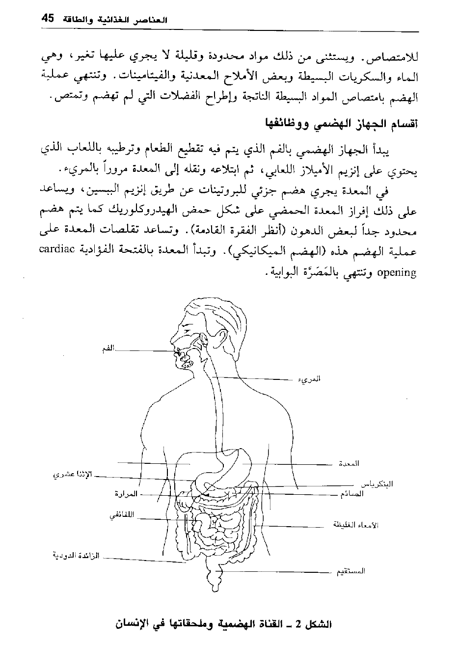 شكل 2- القناة الهضمية وملحقاتها في الإنسان.