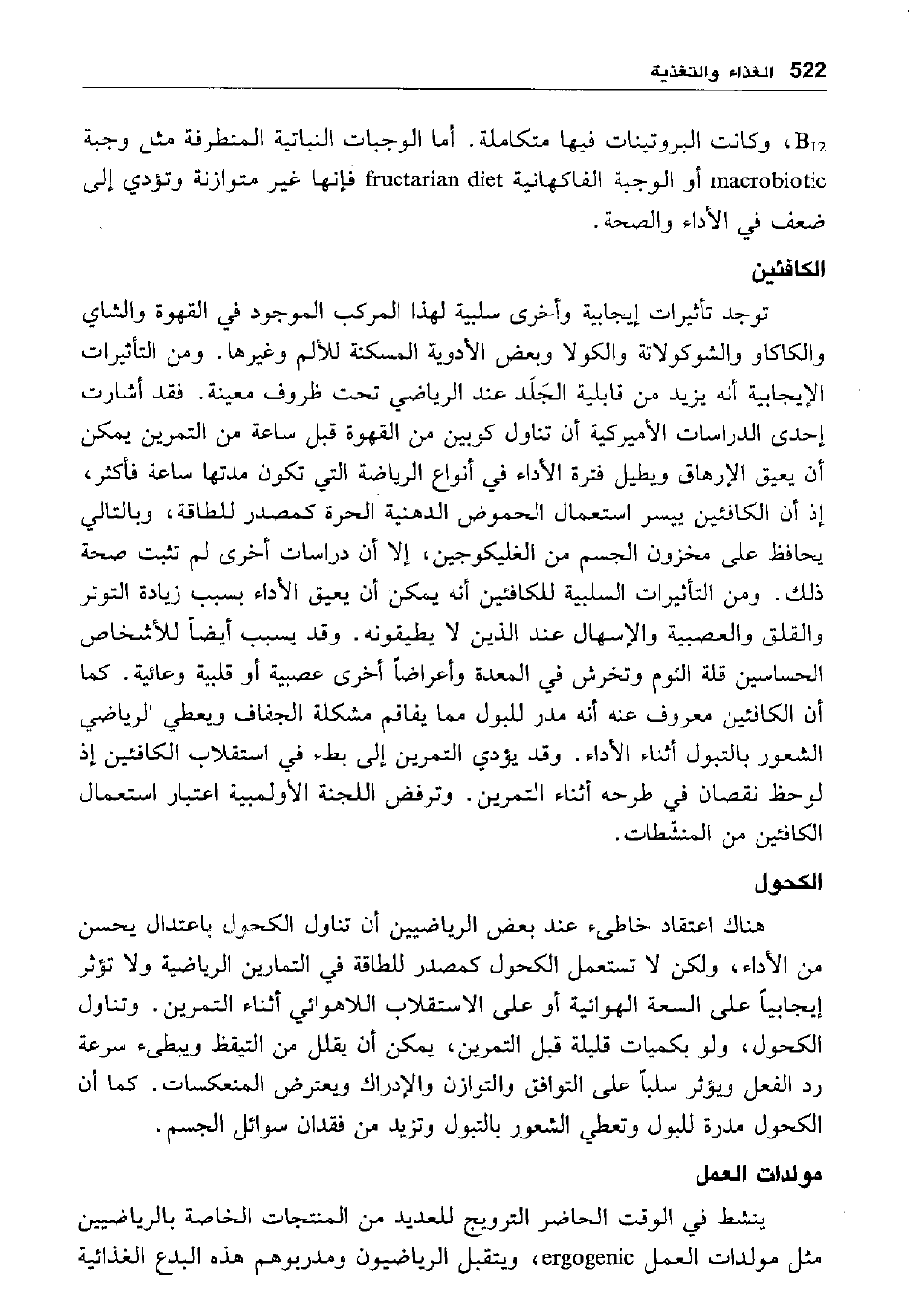 B12، وكانت البروتينات فيها متكاملة. أما الوجبات النباتية المتطرفة مثل وجبة macrobiotic أو الوجبة الفاكهانية fructarian diet فإنها غير متوازنة وتؤدي إلى ضعف في الأداء والصحة.