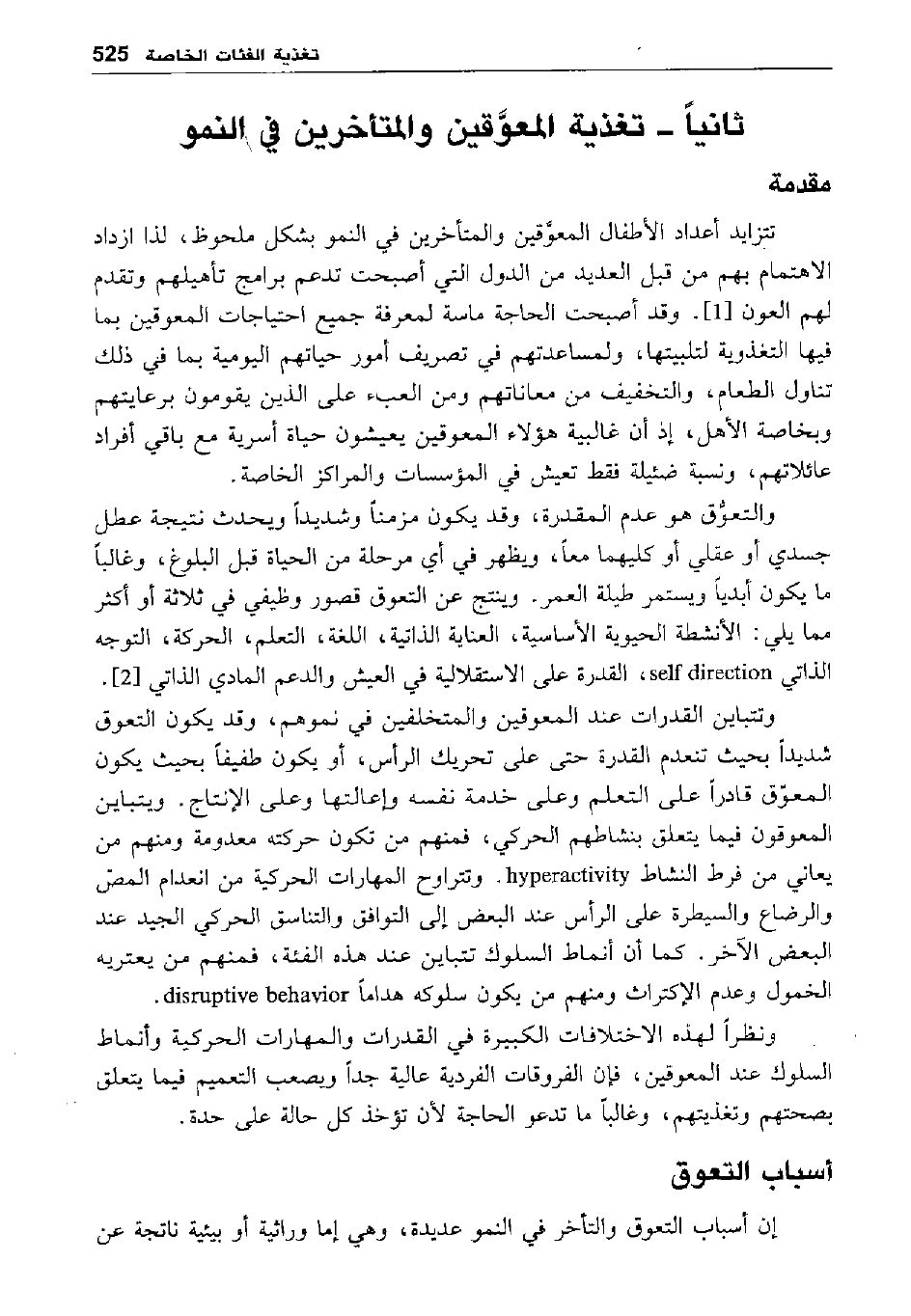 ثانيا: تغذية المعوقين والمتأخرين في النمو