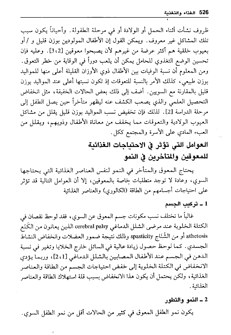 العوامل التي تؤثر في الاحتياجات الغذائية للمعوقين والمتأخرين في النمو: