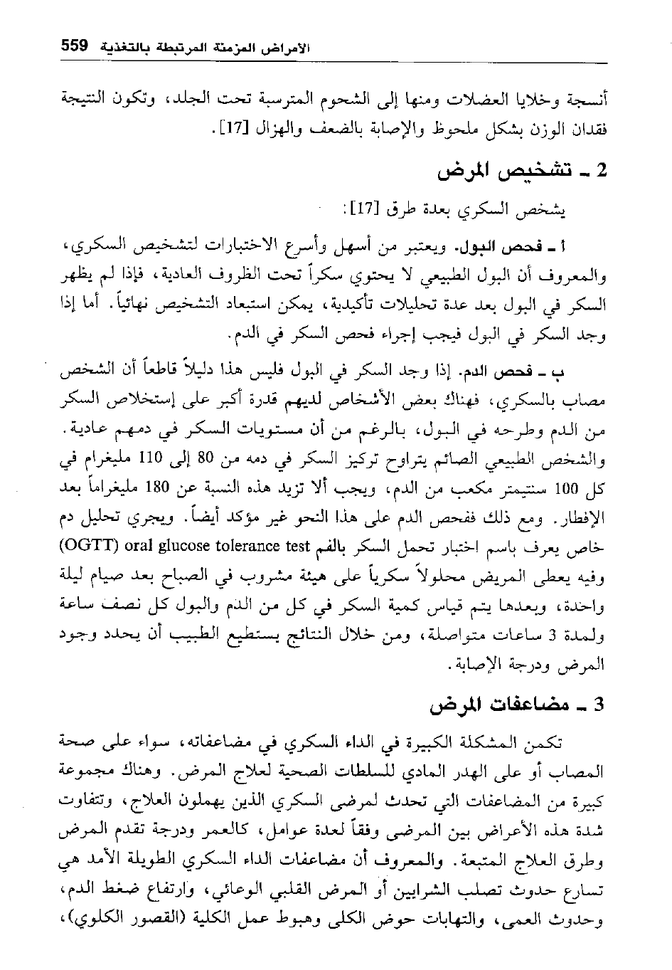 ب- فحص الدم. إذا وجد السكر في البول فليس هذا دليلا قاطعا أن الشخص مصاب بالسكري، فهناك بعض الأشخاص لديهم قدرة أكبر على استخلاص السكر من الدم وطرحه في البولن بالرغم من أن مستويات السكر في دمهم عادية. والشخص الطبيعي الصائم يتراوح تركيز السكر في في دمه إلى 80- 110 مليغرام بعد الإفطار. ومع ذلك ففحص الدم على هذا النحو غير مؤكد أيضا. ويجري تحليل دم خاص يعرف باسم اختبار تحمل السكر بالفم OGTT"" وفيه يعطى المريض محلولا سكريا على هيئة مشروب في الصباح بعد صيام ليلة واحدة، وبعدها يتم قياس كمية السكر في كل من الدم والبول كل نصف ساعة ولمدة 3 ساعات متواصلة، ومن خلال النتائج يستطيع الطبيب أن يحدد وجود المرض ودرجة الإصابة.