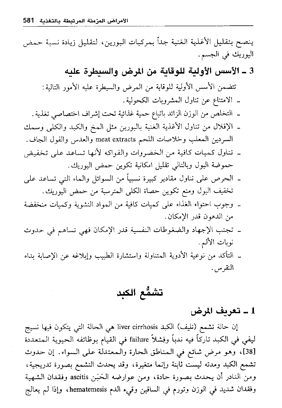 - الإقلال من تناول الأغذية الغنية بالبورين مثل المخ والكبد والكلى وسمك السردين المعلب وخلاصات اللحم meat extracts والعدس والفول الجاف.