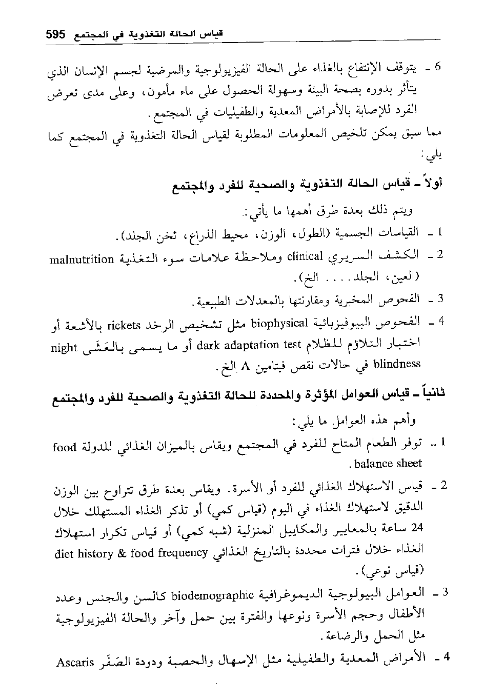 أولا: قياس الحالة التغذوية والصحية للفرد والمجتمع