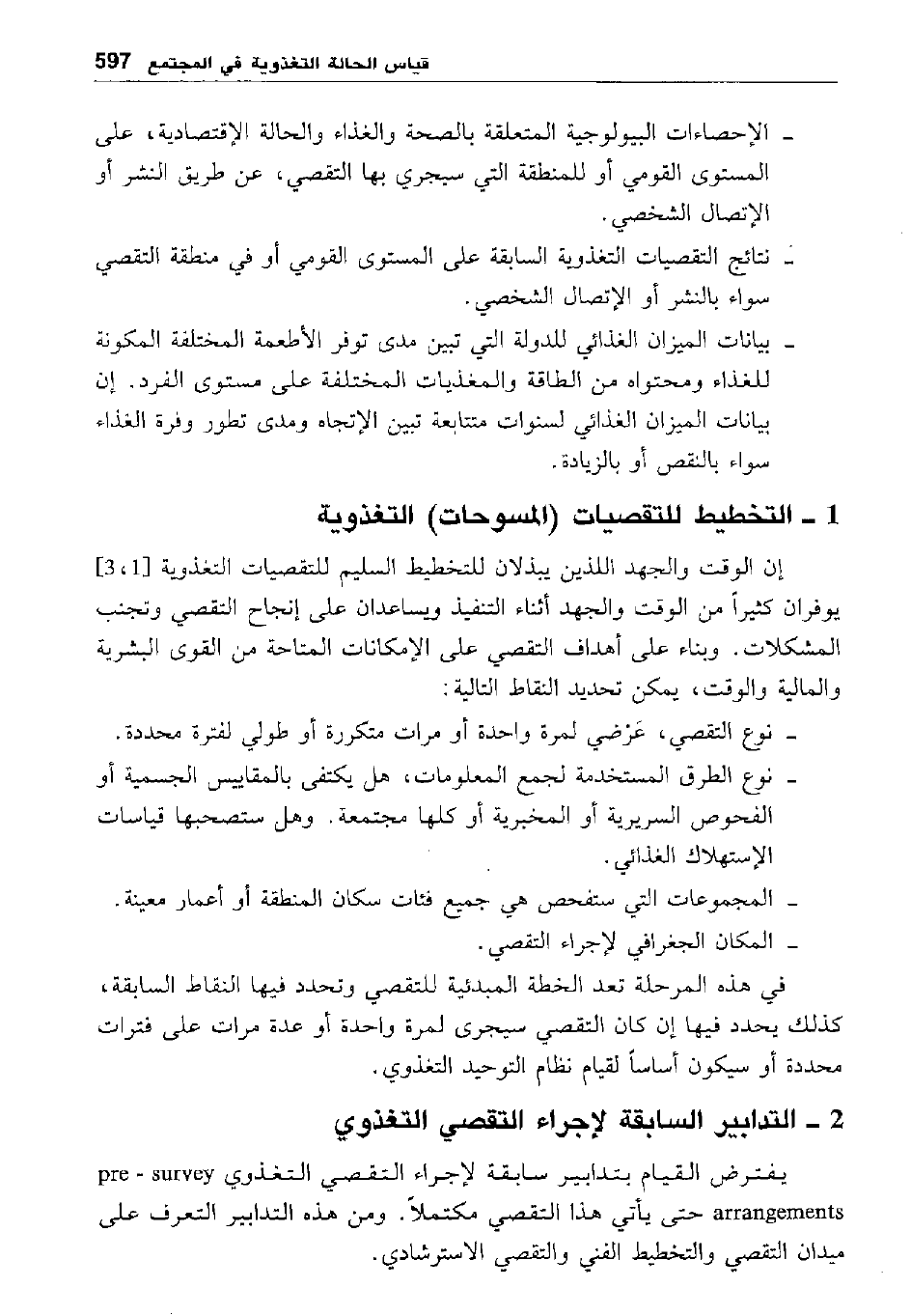 1- التخطيط للتقصيات "المسوحات" التغذوية: