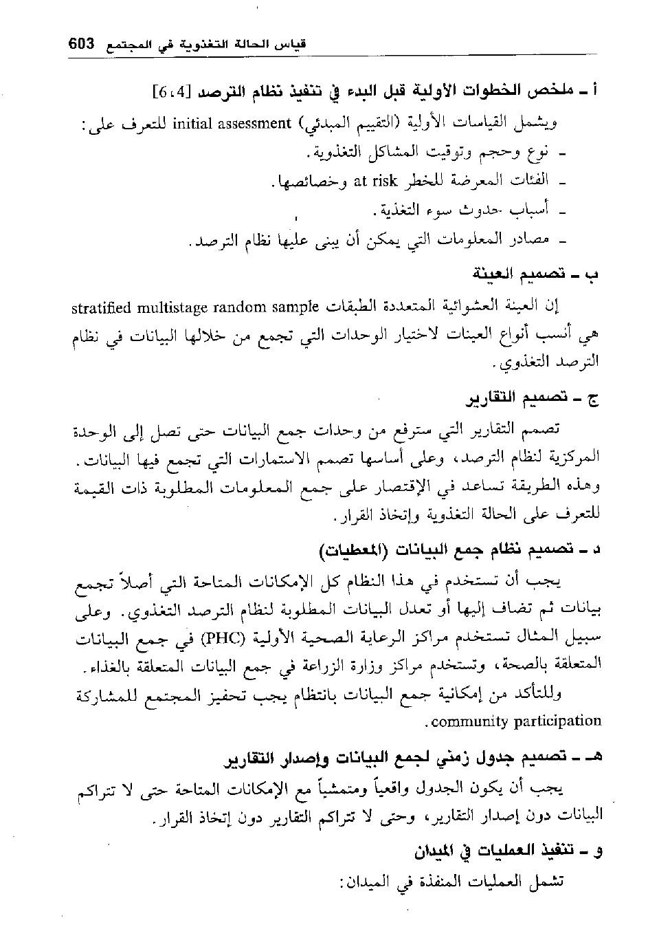 إن العينة العشوائية المتعددة الطبقات stratifed multistage random sample هي نسب أنواع العينات لاختيار الواحدات التي تجمع من خلالها البيانات في نظام الترصد التغذوي.