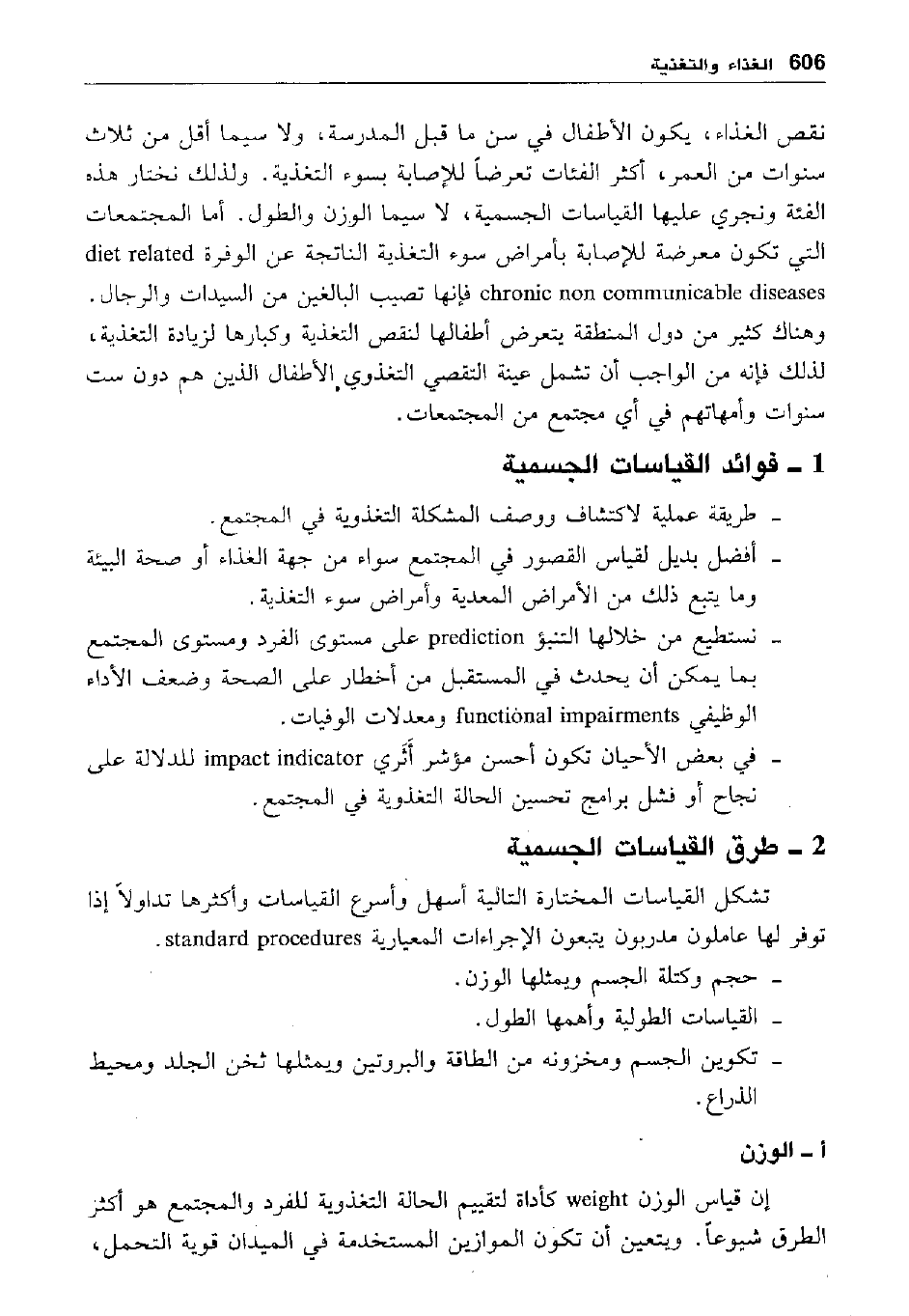 - أفضل بديل لقياس القصور في المجتمع سواء من جهة الغذاء أو صحة البيئة وما يتبع ذلك من الأمراض المعدية وأمراض سوء التغذية: