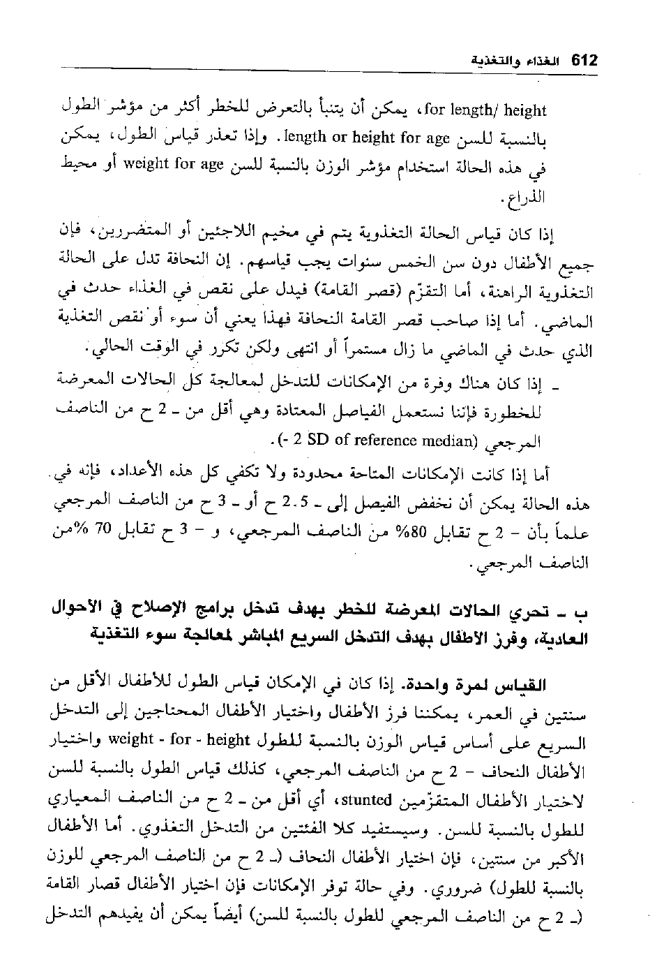 For length height يمكن أن يتنبأ بالتعرض للخطر أكثر من مؤشر الطول بالنسبة للسن length or height for age وإذا تعذر قياس الطول، يمكن في هذه الحالة استخدام مؤشر الوزن بالنسبة للسن weight for age أو محيط الذراع.