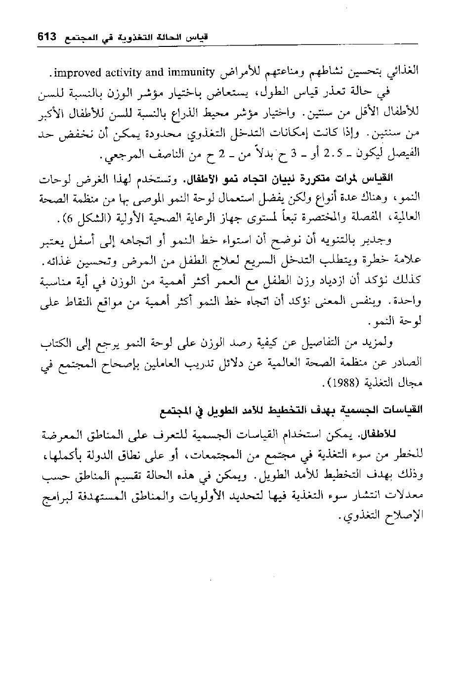 ولمزيد من التفاصيل عن كيفية رصد الوزن على لوحة النمو يرجع إلى الكتاب الصادر عن منظمة الصحة العالمية عن دلائل تدريب العاملين بإصحاح المجتمع في مجال التغذية "1988".