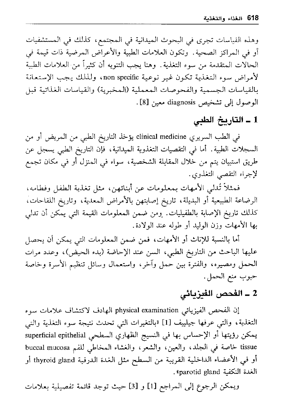 إن الفحص الفيزيائي physical examination الهادف لاكتشاف علامات سوء التغذية، والتي عرفها جيلييف [1] "بالتغيرات التي تحدث نتيجة سوء التغذية والتي يمكن رؤيتها أو الإحساس بها في النسيج الظهاري السطحي superficial epetheliah tissue خاصة في الجلد، والعين، والشعر، والغشاء المخاطي للفم superficial epithelial tissue خاصة في الجلد، والعين، والشعر، والغشاء المخاطي للفم buccal mucosa أو في حالة الأعضاء الداخلية القريبة من السطح مثل الغدة الدرقية thyroid gland أو الغدة النكفية parotid gland".