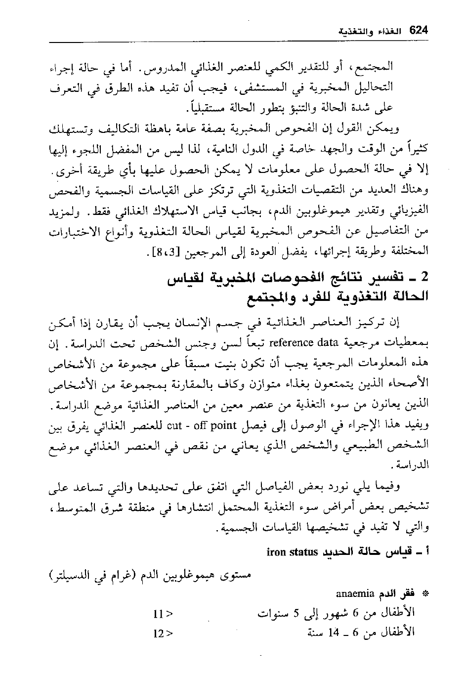 2- تفسير نتائج الفحوصات المخبرية لقياس الحالة التغذوية للفرد والمجتمع