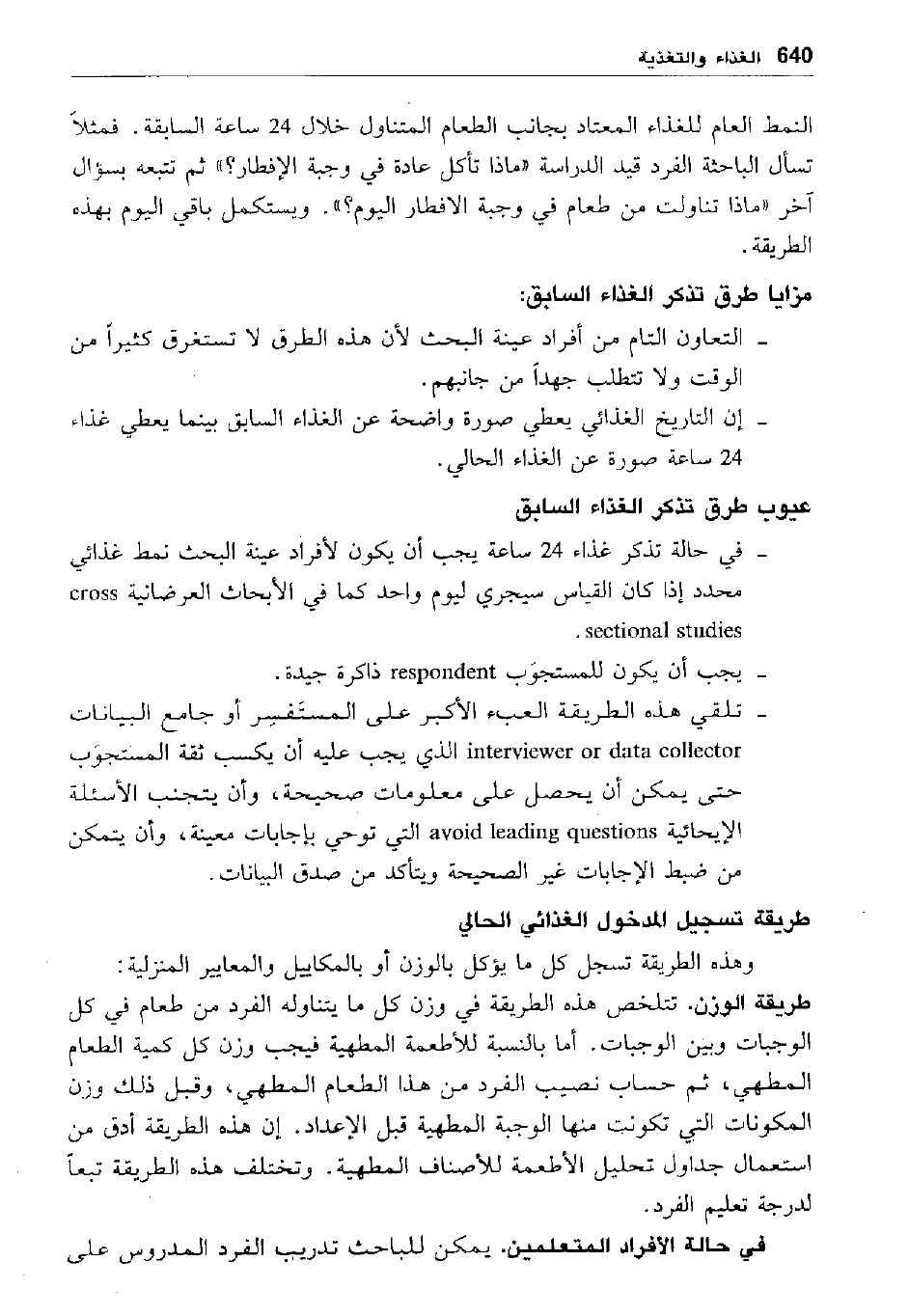 - في حالة تذكر غذاء 24 ساعة يجب أن يكون لأفراد عينة البحث نمط غذائي محددا إذا كان القياس سيجري ليوم واحد كما في الأبحاث العرضانية cross setional studies.