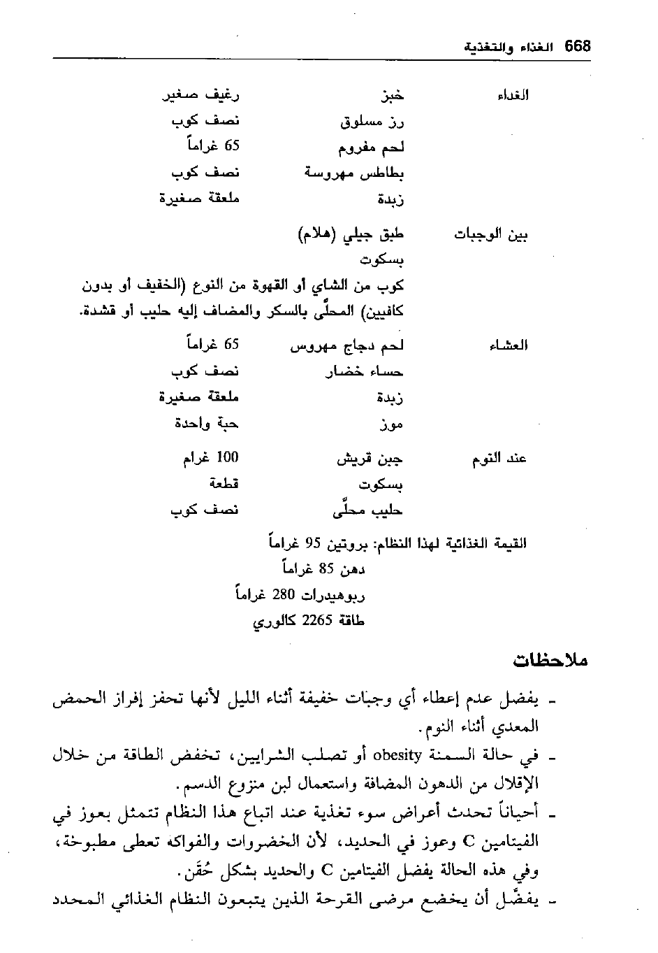 القيمة الغذائية لهذا النظام: بروتين 95 غراما