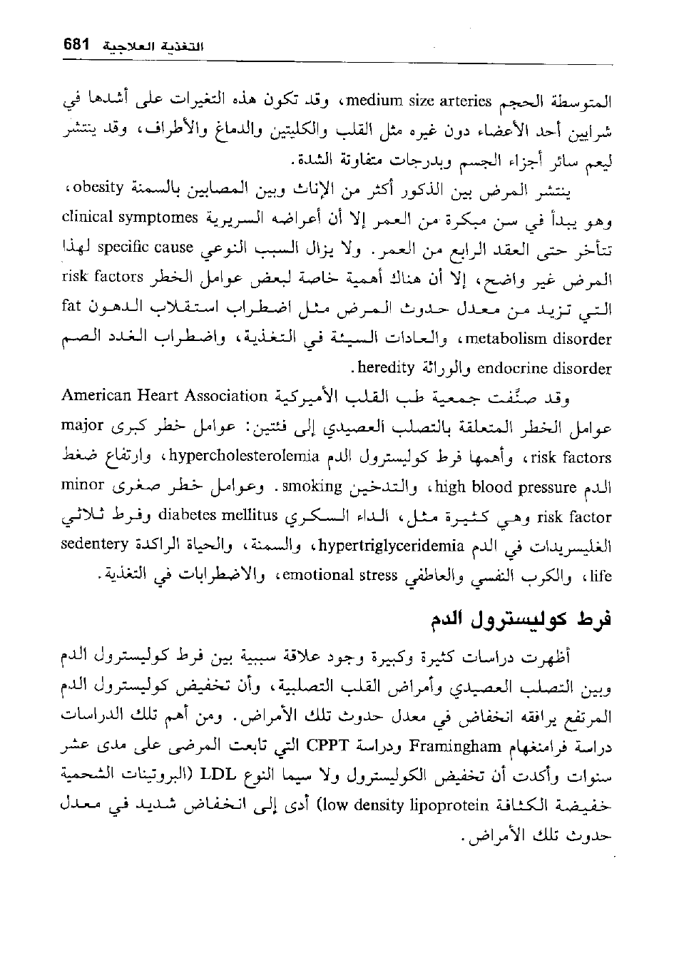 يعد التصلب العصيدي atherosclerosis مرضا مزمنا chronic ومترقيا prgressive يؤدي لتصلب sclerosis جدر الشرايين وسماكتها thickening وضيق لمعتها lumen فتفقد مرونتها elasticty بسبب ترسب diposition الكوليسترول وأملاح الكالسيوم في جدران الشرايين الكبيرة الحجم larg size arteries والشرايين المتوسطة الحجم medium size arteries وقد تكون هذه التغيرات على أشدها في شرايين في شرايين أحد الأعضاء دون غيره مثل القلب والكليتين والدماغ والأطراف وقد ينتشر ليعم سائر أجزاء الجسم وبدرجات متفاوتة الشدة.