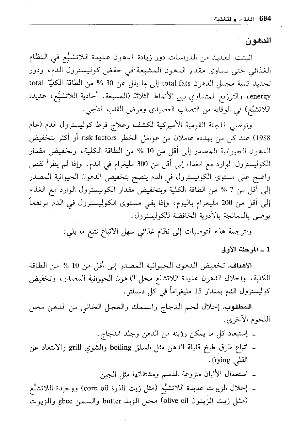 - إحلال الزيوت عديدة اللاتشبع "مثل زيت الذرة corn oil" ووحيدة اللاتشبع "مثل زيت الزيتون olive oil محل الزبد buttir والسمن ghee والزيوت