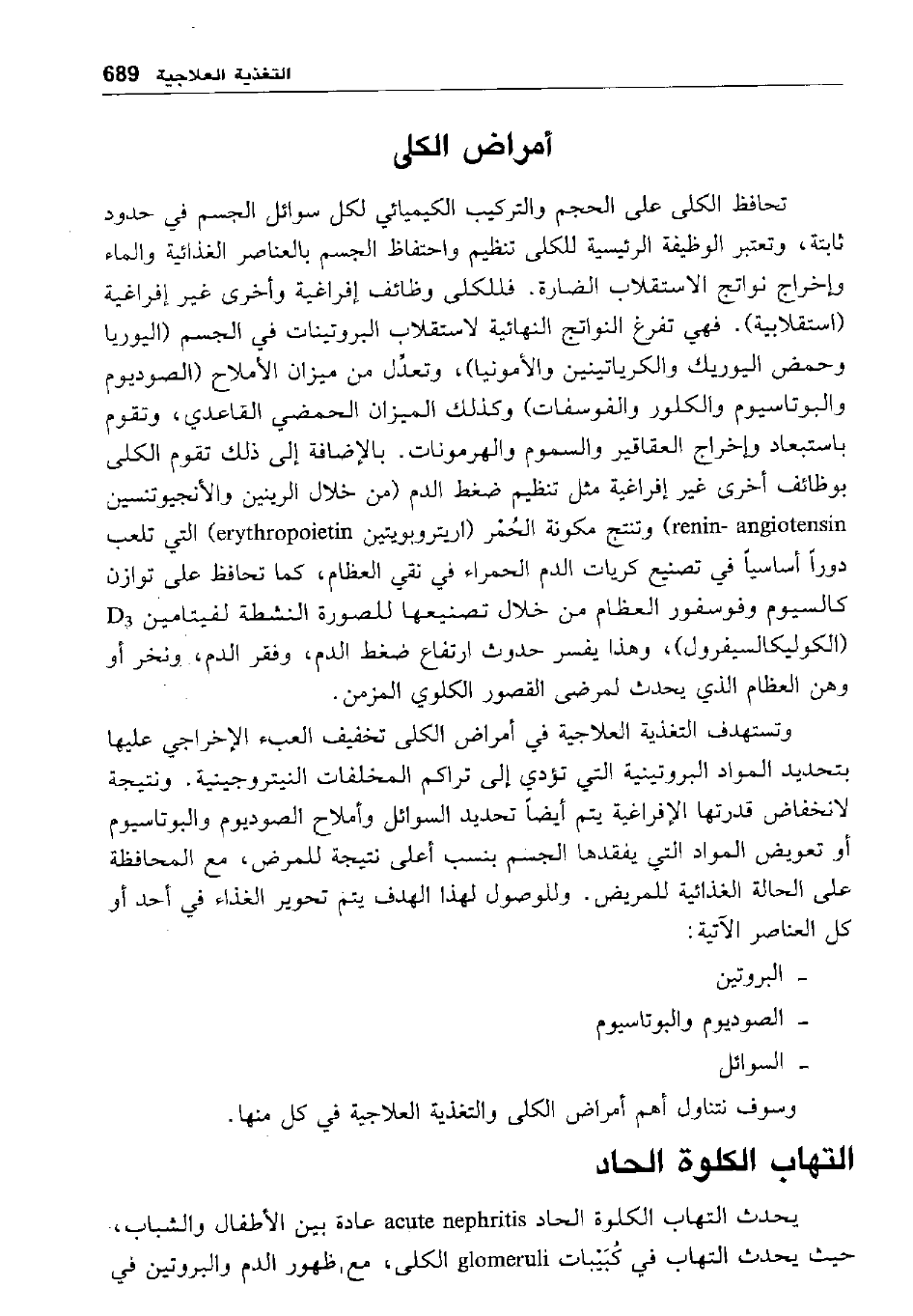وسوف نتناول أهم أمراض الكلى والتغذية والعلاجية في كل منها.