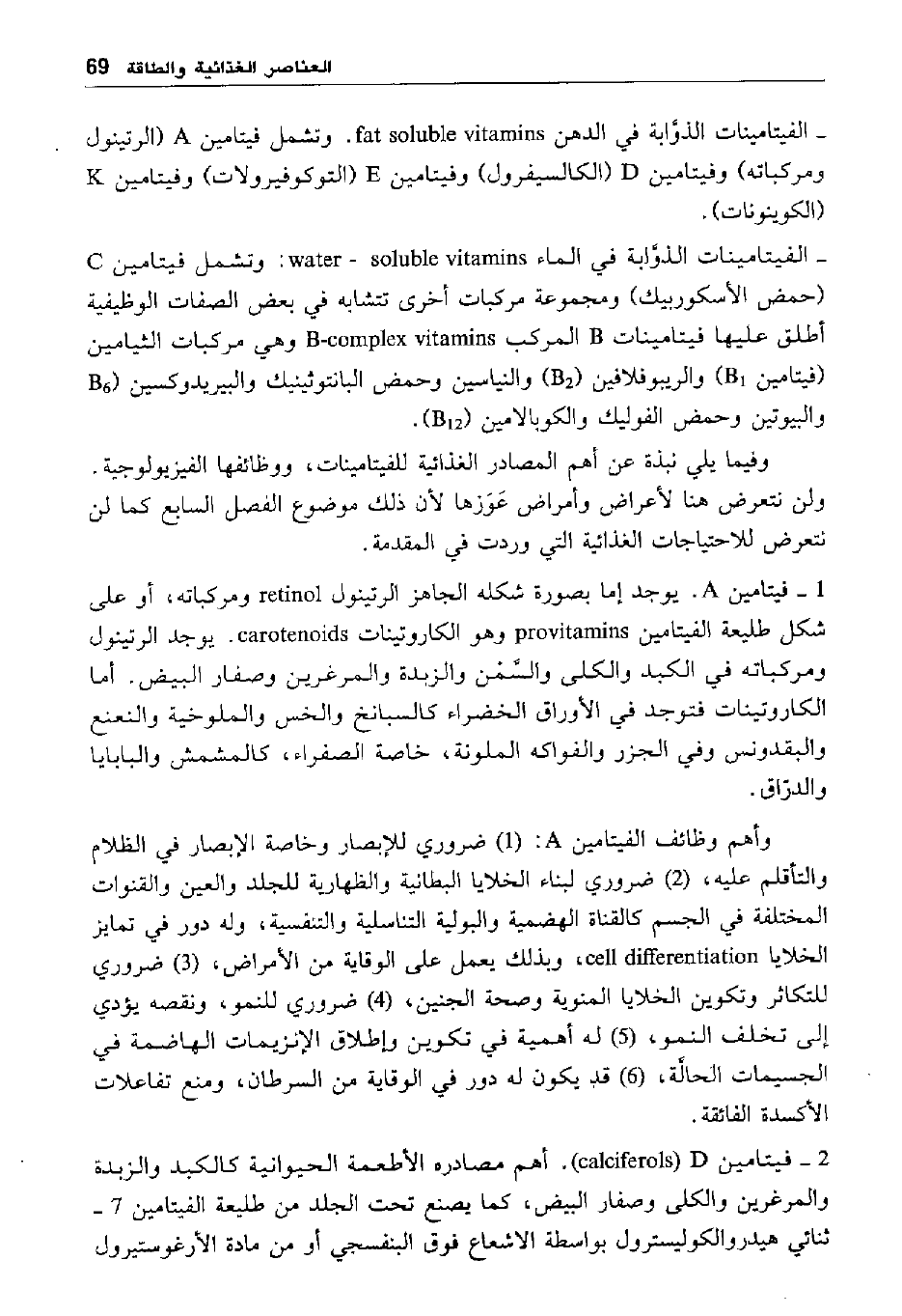 ولن نتعرض هنا لأغراض وأمراض عوزها لأن ذلك موضوع الفصل السابع كما لن نتعرض للاحتياجات الغذائية التي وردت في المقدمة.