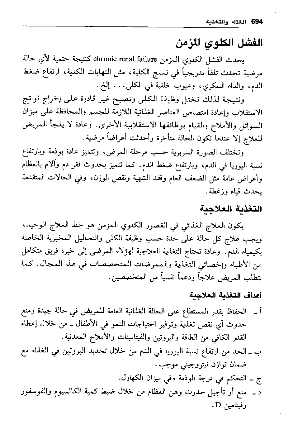 ب- الحد من ارتفاع نسبة اليوريا في الدم من خلال تحديد البروتين في الغذاء مع ضمان توازن نيتروجيني موجب.