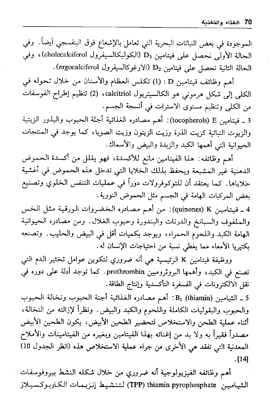 5- الثيامين "thiamin" B1: أهم مصادره الغذائية أجنة الحبوب ونخالة الحبوب والحبوب والبقوليات الكاملة واللحوم والكبد والبيض. ونظرا لإزالته من النخالة، أثناء عملية الطحن والاستخلاص لتحضير الطحين الأبيض، يكون الطحين الأبيض مصدرا فقيرا به ولا بد من إغنائه بهذا الفيتامين وبغيره من الفيتامينات والأملاح المعدنية التي تفقد هي الأخرى من جراء عملية الاستخلاص هذه "انظر الجدول 10" "14".