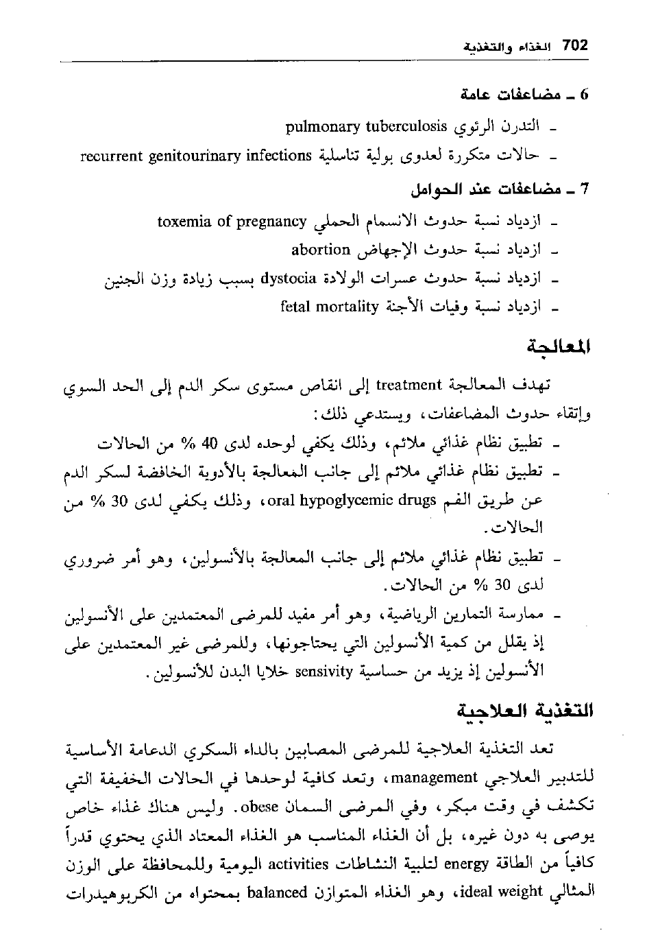- تطبيق نظام غذائي ملائم إلى جانب المعالجة بالأدوية الخافضة لسكر الدم عن طريق الفم oral hypoglycemec، وذلك يكفي لدى 30% من الحالات.