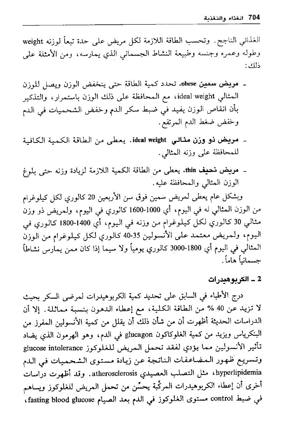 - مريض نحيف thin. يعطى من الطاقة الكمية اللازمة لزيادة وزنه حتى بلوغ الوزن المثالي والمحافظة عليه.