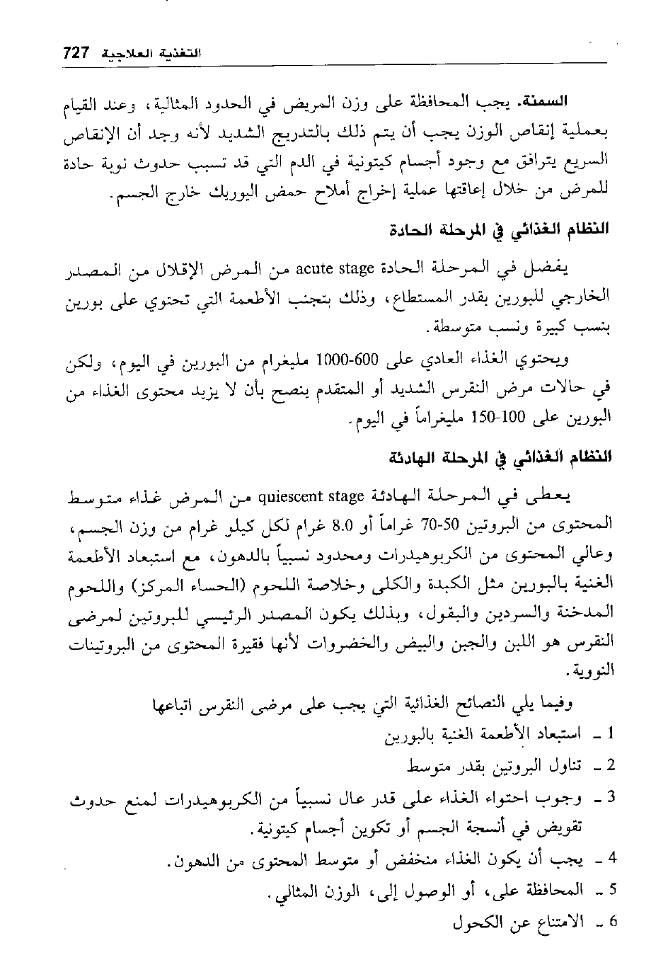 النظام الغذائي في المرحلة الحادة: