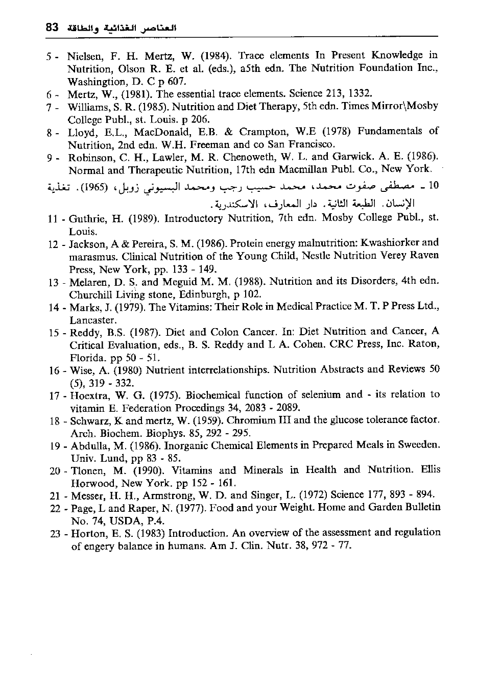 13 - Melaren, D. S. and Meguid M. M. (1988) . Nutrition and its Disorders, 4th edn.
