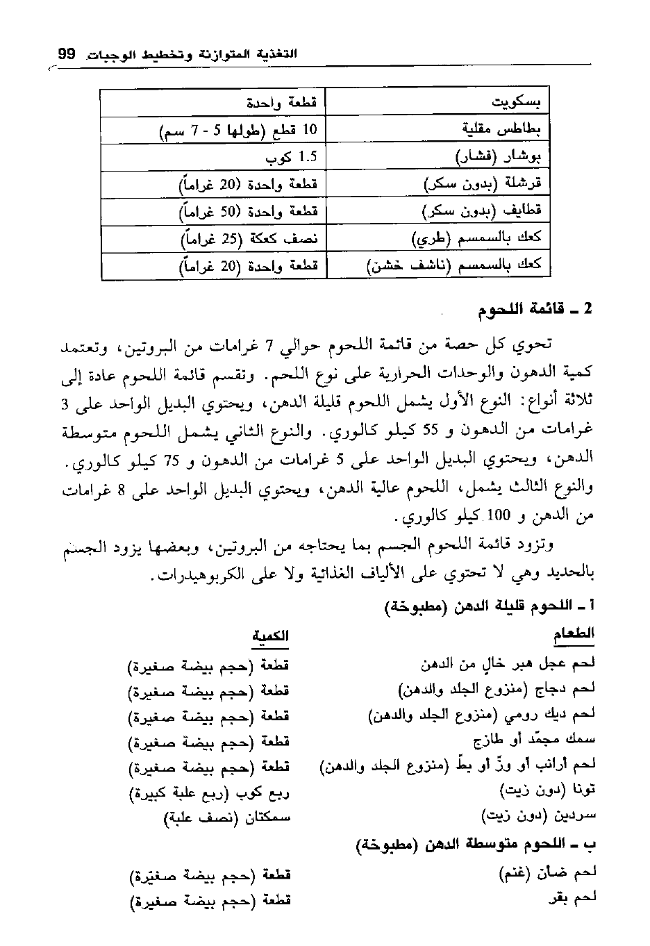 2- قائمة اللحوم: