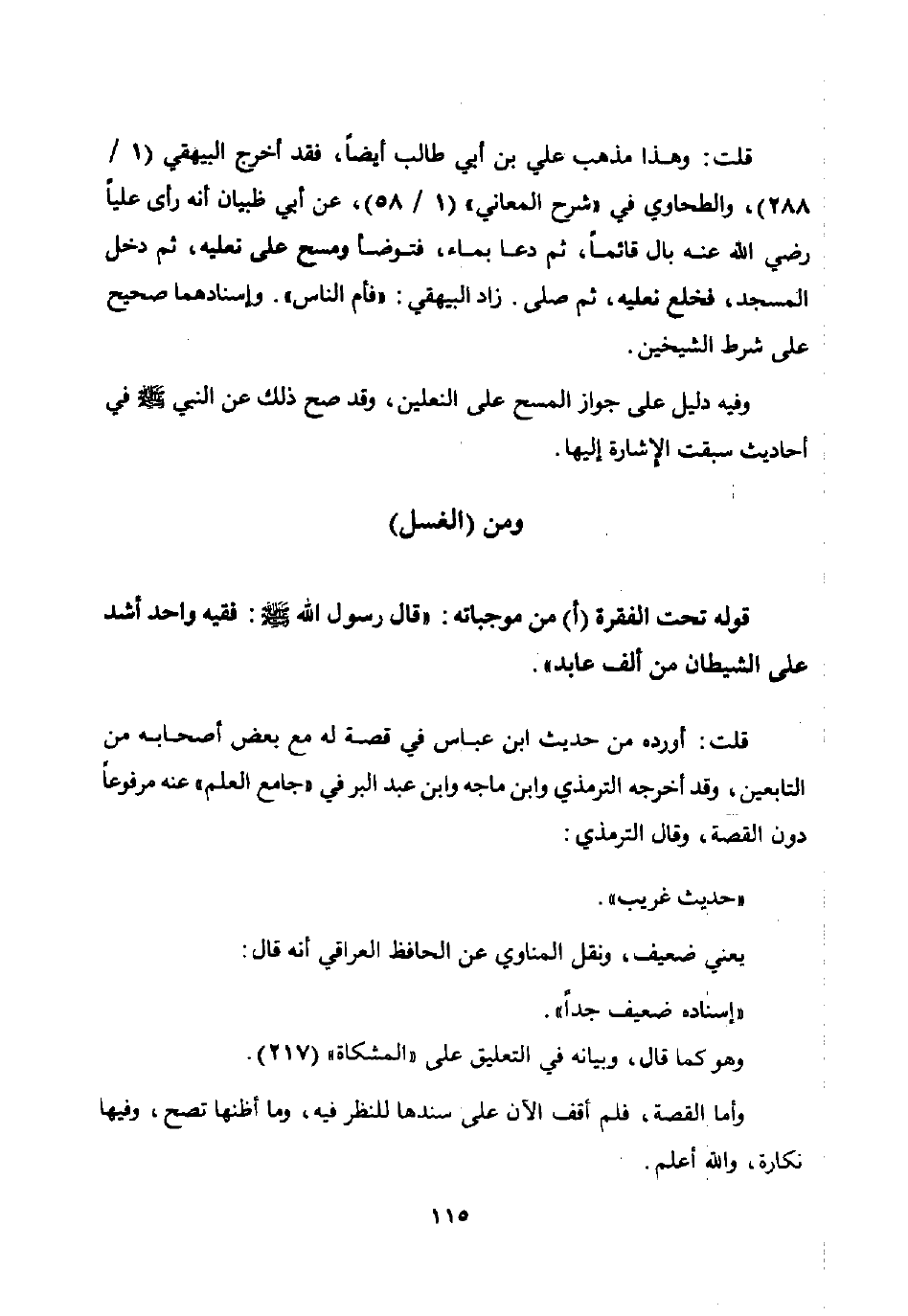 قوله تحت الفقرة أمن موجباته: قال رسول الله صلى الله عليه وسلم: "فقيه واحد أشد على الشيطان من ألف عابد".