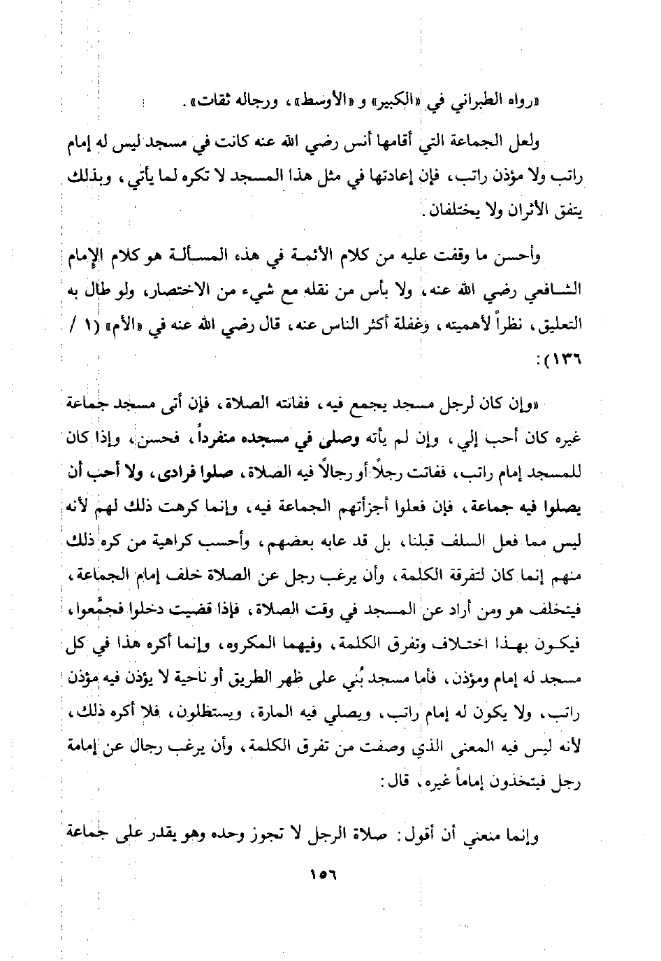"وإن كان لرجل مسجد يجمع فيه ففاتته الصلاة فإن أتى مسجد جماعة غيره كان أحب إلي إن لم يأته وصلى في مسجده منفردا فحسن وإذا كان للمسجد إمام راتب ففاتت رجلا أو رجالا فيه الصلاة صلوا فرادى ولا أحب أن يصلوا فيه جماعة فإن فعلوا أجزأتهم الجماعة فيه وإنما كرهت ذلك لهم لأنه ليس مما فعل السلف قبلنا بل قد عابه بعضهم وأحسب كراهية من كره ذلك منهم إنما كان لتفرقة الكلمة وأن يرغب رجل عن الصلاة خلف إمام الجماعة فيتخلف هو ومن أراد عن المسجد في وقت الصلاة فإذا قضيت دخلوا فجمعوا فيكون بهذا اختلاف وتفرق الكلمة وفيهما المكروه وإنما أكره هذا في كل مسجد له إمام ومؤذن فأما مسجد بني على ظهر الطريق أو ناحية لا يؤذن فيه مؤذن راتب ولا يكون له إمام راتب ويصلي فيه المارة ويستظلون فلا أكره ذلك لأنه ليس فيه المعنى الذي وصفت من تفرق الكلمة وأن يرغب رجال عن إمامة رجل فيتخذون إماما غيره قال: