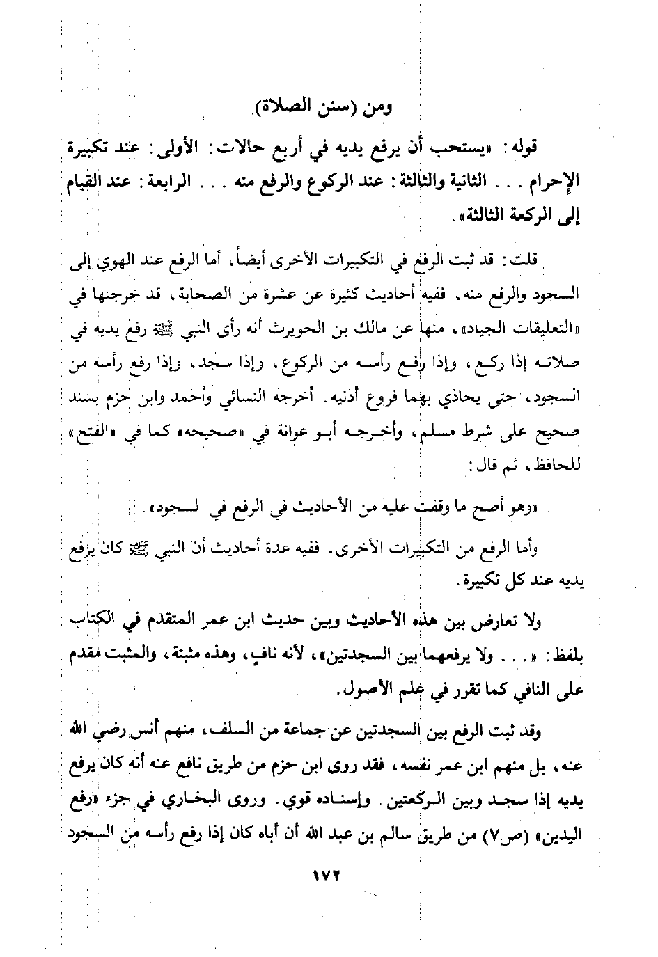 قوله: "يستحب أن يرفع يديه في أربع حالات: الأولى: عند تكبيرة الإحرام ... الثانية والثالثة: عند الركوع والرفع منه ... الرابعة: عند القيام إلى الركعة الثالثة".