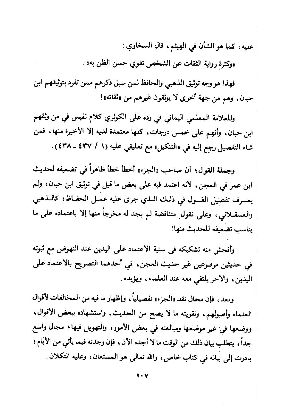 وللعلامة المعلمي اليماني في رده على الكوثري كلام نفيس في من وثقهم ابن حبان وأنهم على خمس درجات كلها معتمدة لديه إلا الأخيرة منها فمن شاء التفصيل رجع إليه في "التنكيل" مع تعليقي عليه 1 / 437 – 438.