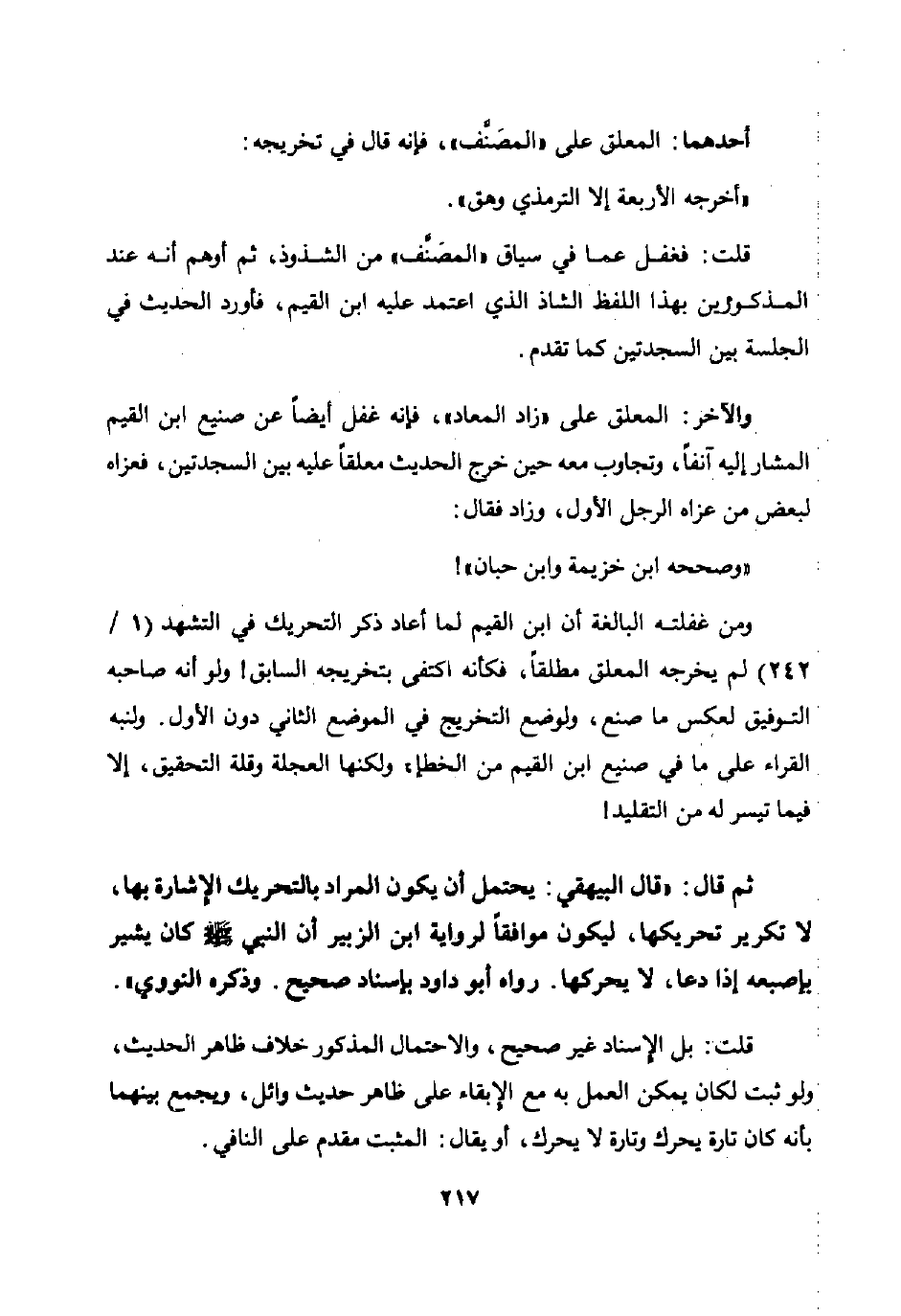 ومن غفلته البالغة أن ابن القيم لما أعاد ذكر التحريك في التشهد 1 / 242 لم يخرجه المعلق مطلقا فكأنه اكتفى بتخريجه السابق ولو أنه صاحبه التوفيق لعكس ما صنع ولوضع التخريج في الموضع الثاني دون الأول