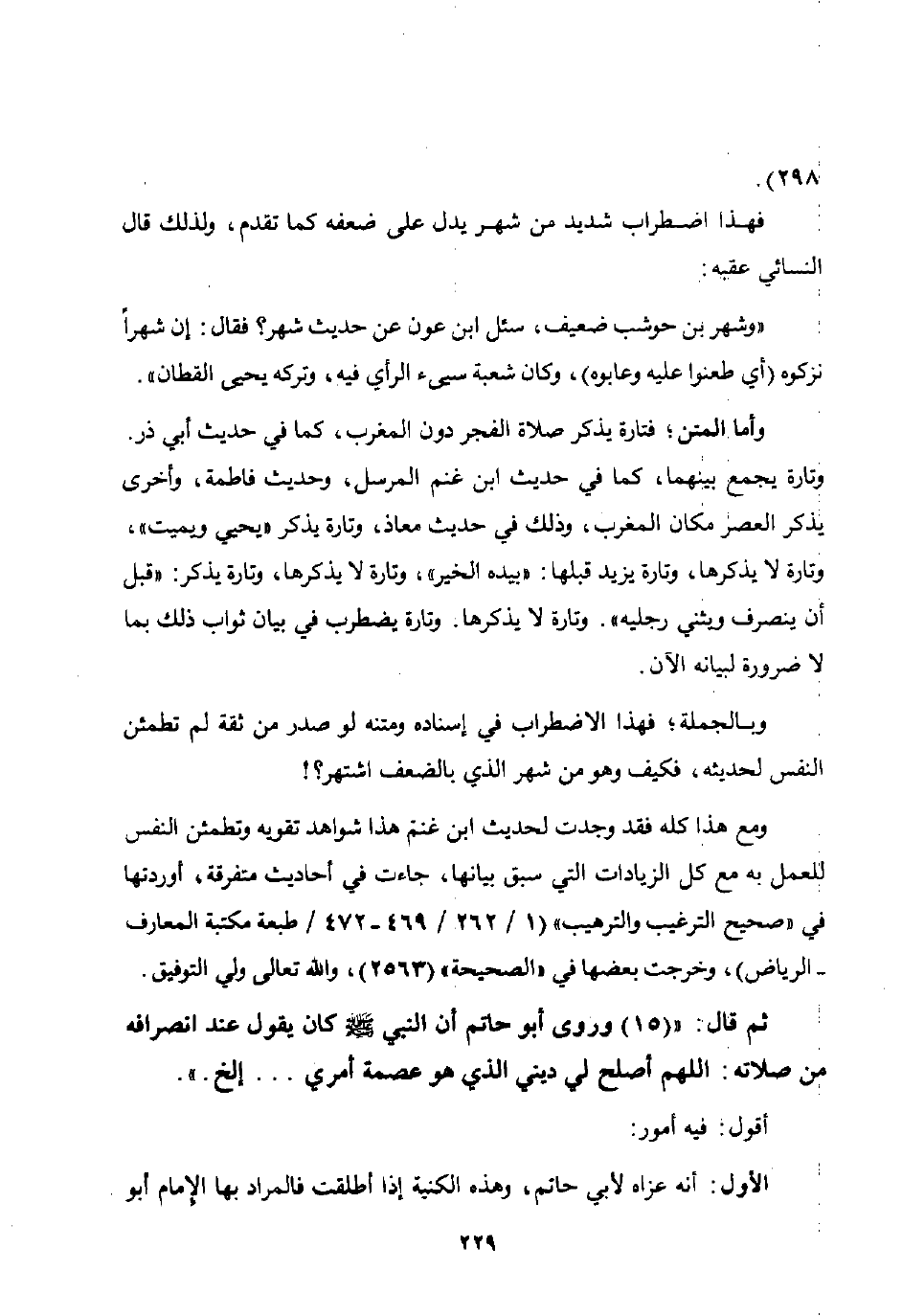 ثم قال:" 15 وروى أبو حاتم أن النبي صلى الله عليه وسلم كان يقول عند انصرافه من صلاته: "اللهم أصلح لي ديني الذي هو عصمة أمري" ... الخ".