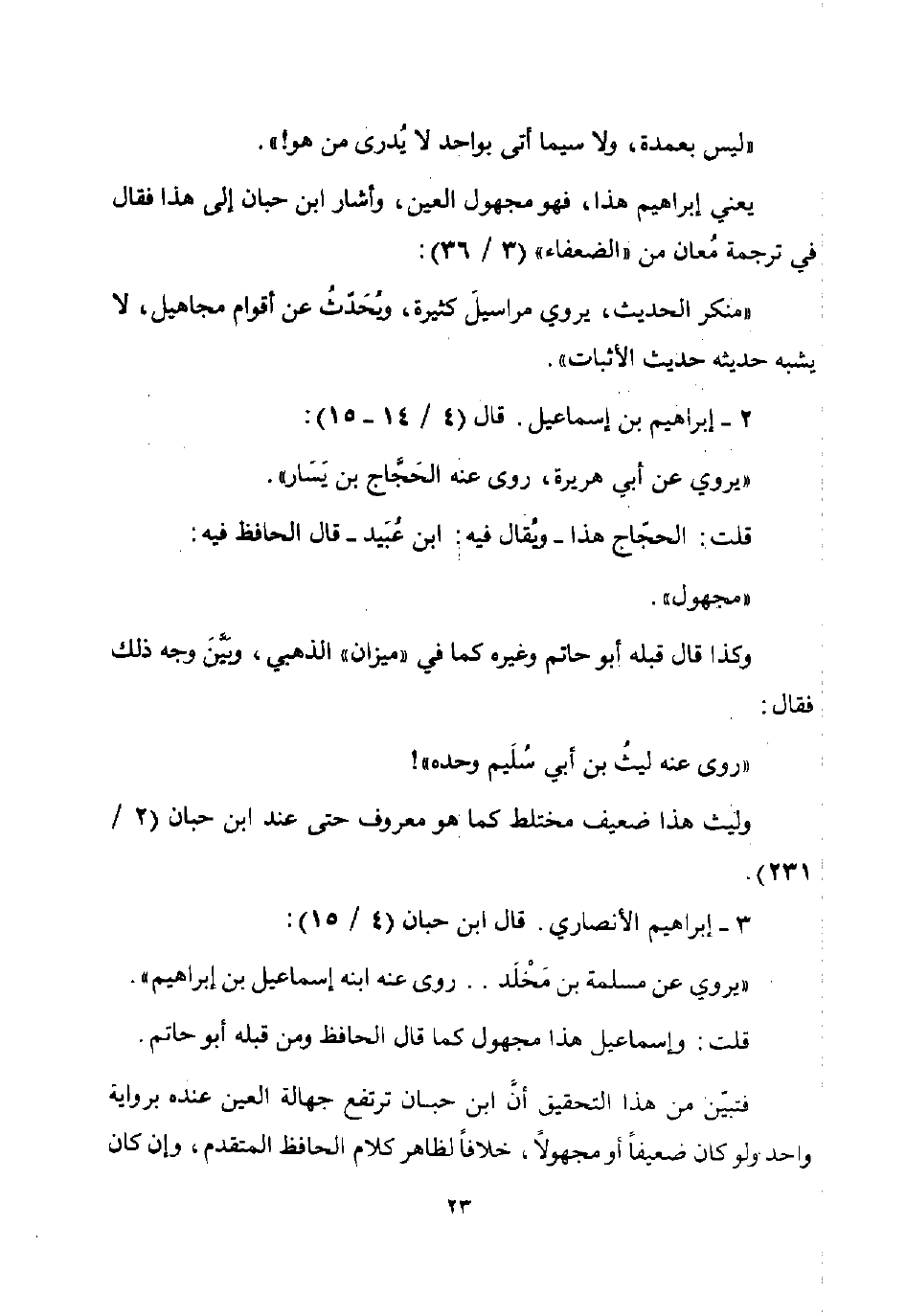 فتبين من هذا التحقيق أن ابن حبان ترتفع جهالة العين عنده برواية واحد ولو كان ضعيفا أو مجهولا خلافا لظاهر كلام الحافظ المتقدم وإن كان