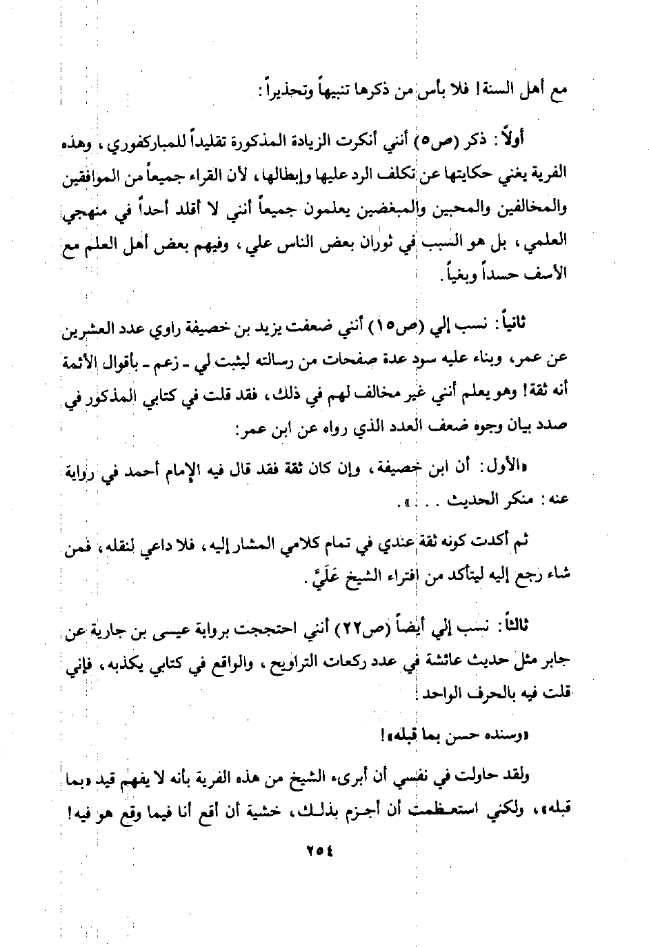 أولا: ذكر ص 5 أنني أنكرت الزيادة المذكورة تقليدا للمباركفوري وهذه الفرية يغني حكايتها عن تكلف الرد عليها وإبطالها لأن القراء جميعا من الموافقين والمخالفين والمحبين والمبغضين يعلمون جميعا أنني لا أقلد أحدا في منهجي العلمي بل هو السبب في ثوران بعض الناس علي وفيهم بعض أهل العلم مع الأسف حسدا وبغيا.