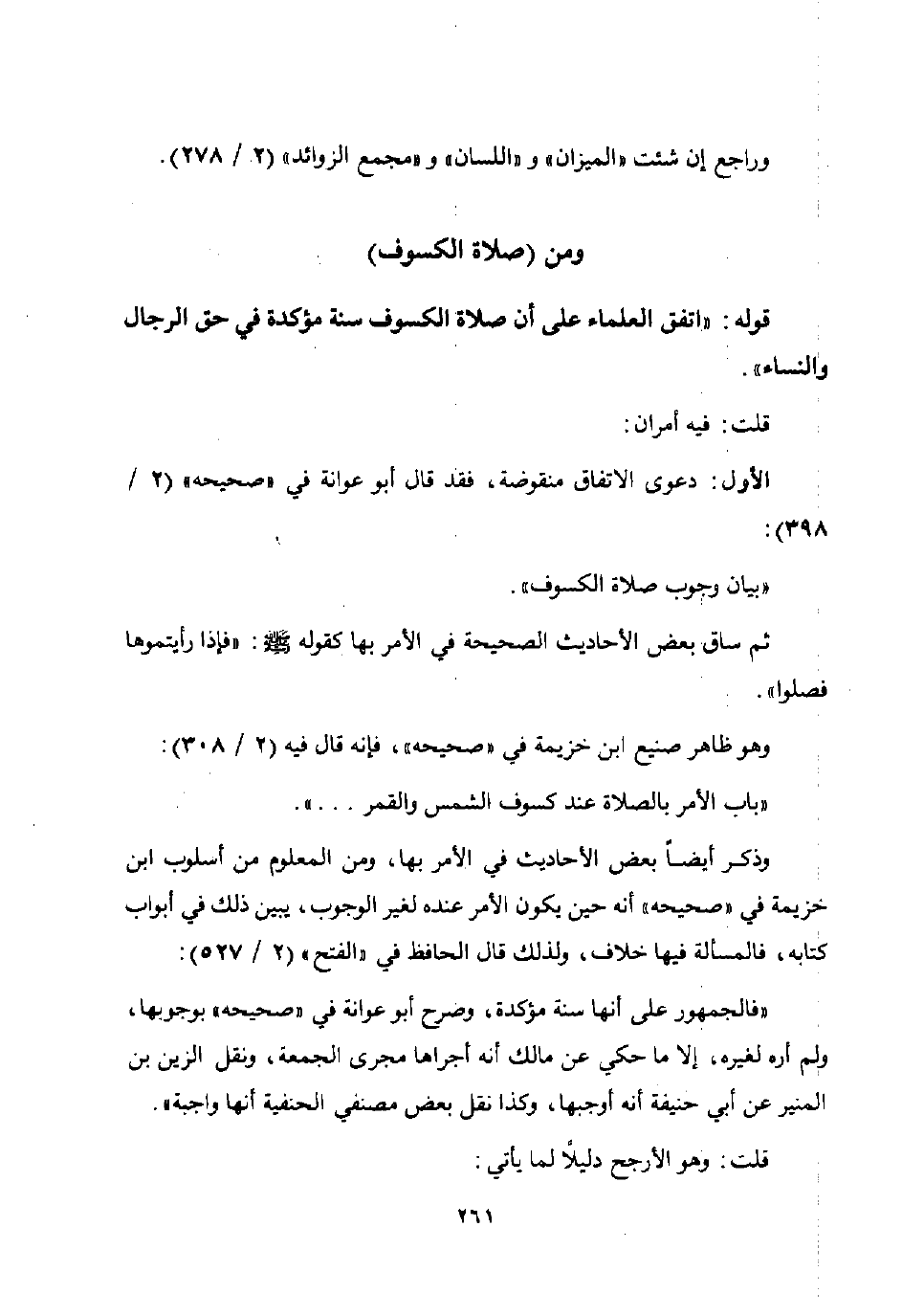 قوله: "اتفق العلماء على أن صلاة الكسوف سنة مؤكدة في حق الرجال" والنساء".