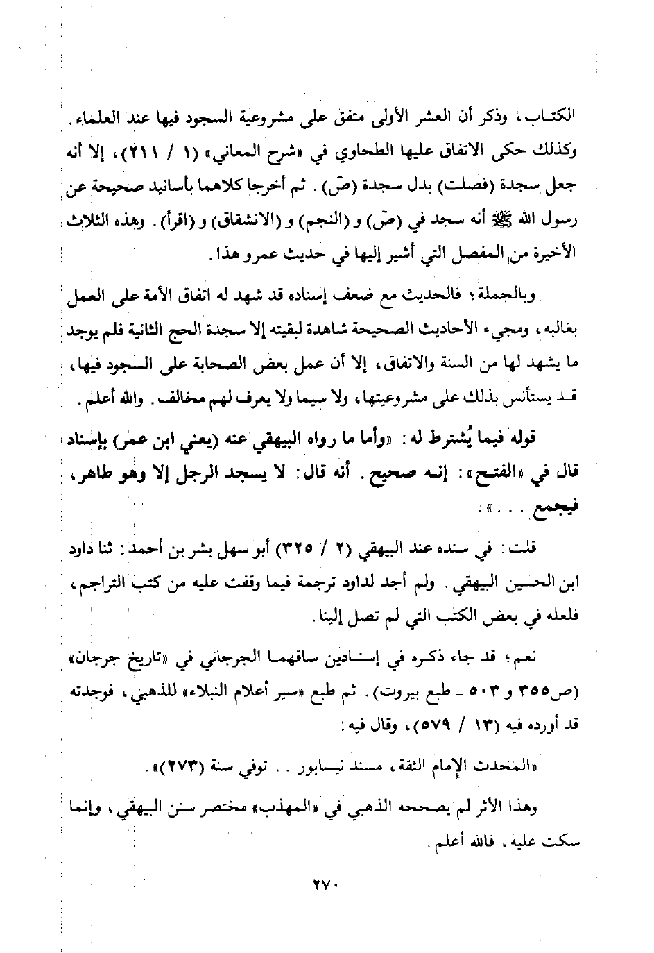 وبالجملة فالحديث مع ضعف إسناده قد شهد له اتفاق الأمة على العمل بغالبه ومجيء الأحاديث الصحيحة شاهدة لبقيته إلا سجدة الحج الثانية فلم يوجد ما يشهد لها من السنة والاتفاق إلا أن عمل بعض الصحابة على السجود فيها قد يستأنس بذلك على مشروعيتها ولا سيما ولا يعرف لهم مخالف. والله أعلم.