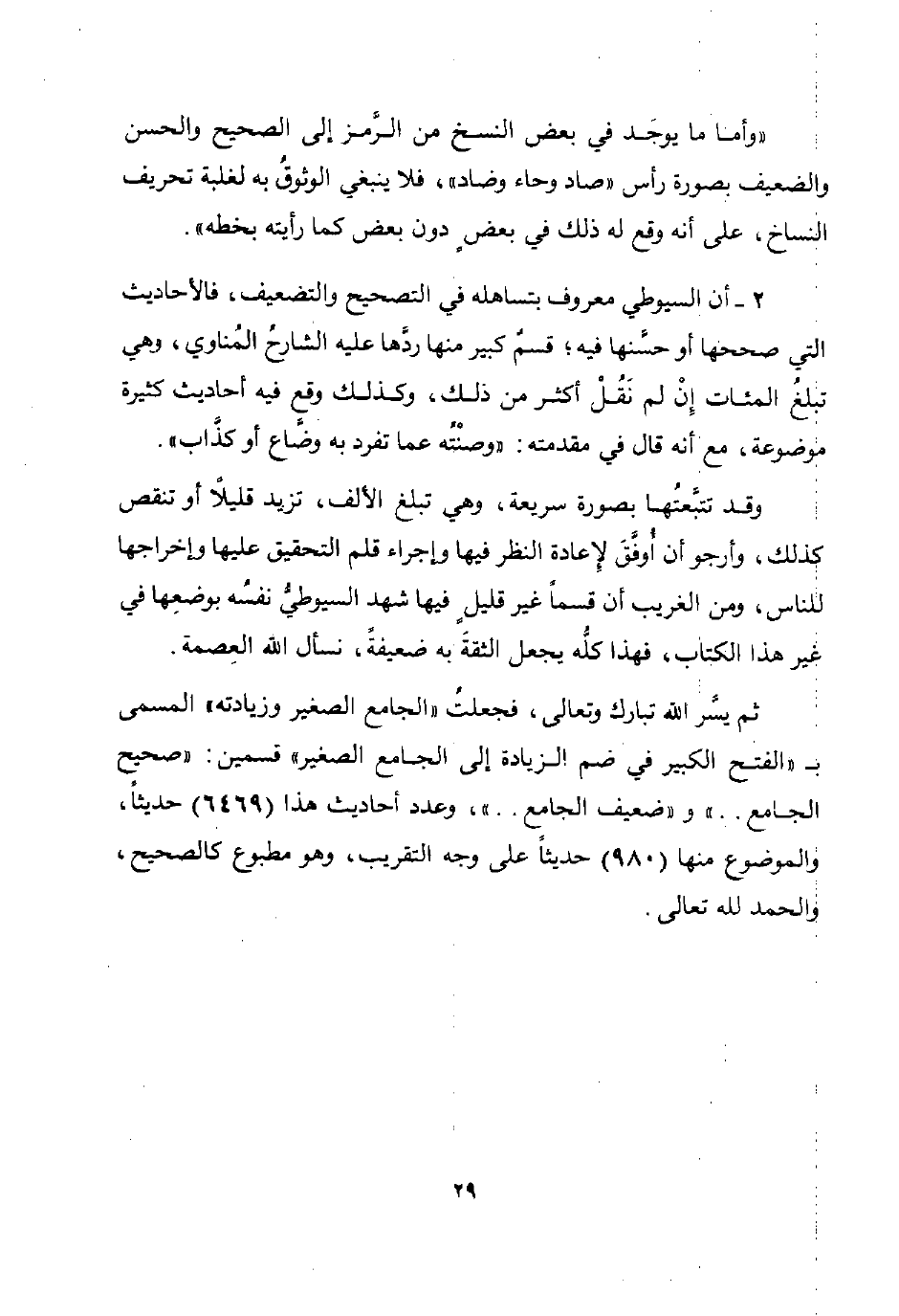 2 - أن السيوطي معروف بتساهله في التصحيح والتضعيف فالأحاديث التي صححها أو حسنها فيه قسم كبير منها ردها عليه الشارح المناوي وهي تبلغ المئات إن لم نقل أكثر من ذلك وكذلك وقع فيه أحاديث كثيرة موضوعة مع أنه قال في مقدمته: "وصنته عما تفرد به وضاع أو كذاب".