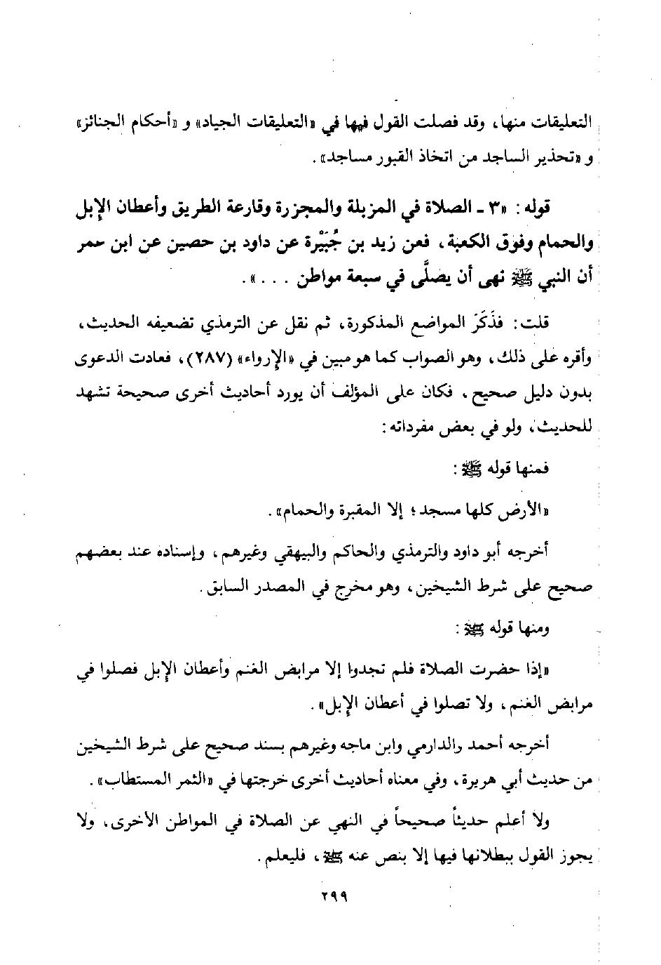 التعليقات منها وقد فصلت القول فيها في "التعليقات الجياد" و "أحكام الجنائز" و "تحذير الساجد من اتخاذ القبور مساجد".