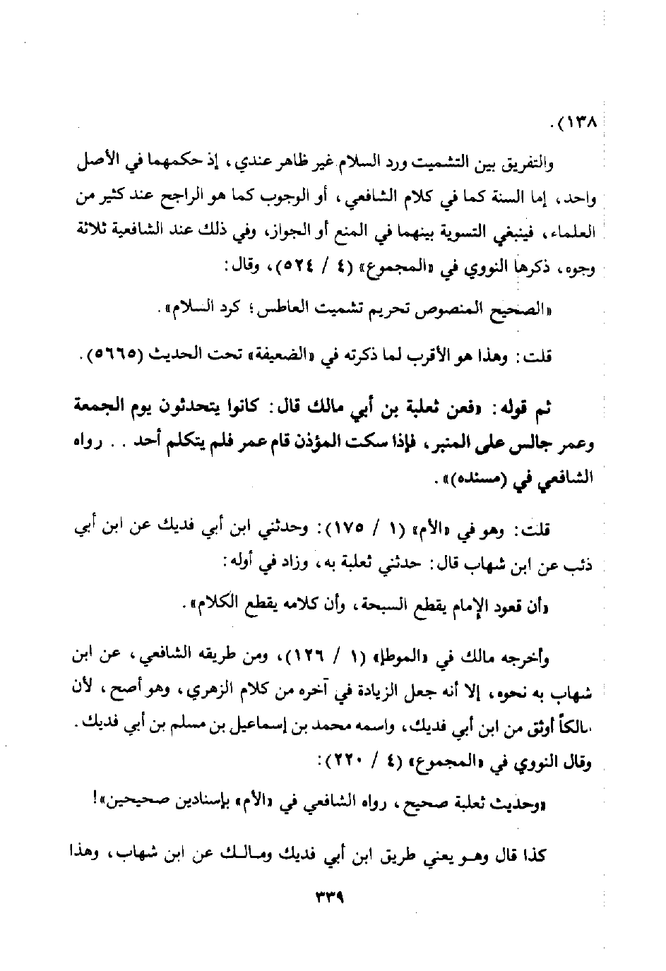 "الصحيح المنصوص تحريم تشميت العاطس كرد السلام".