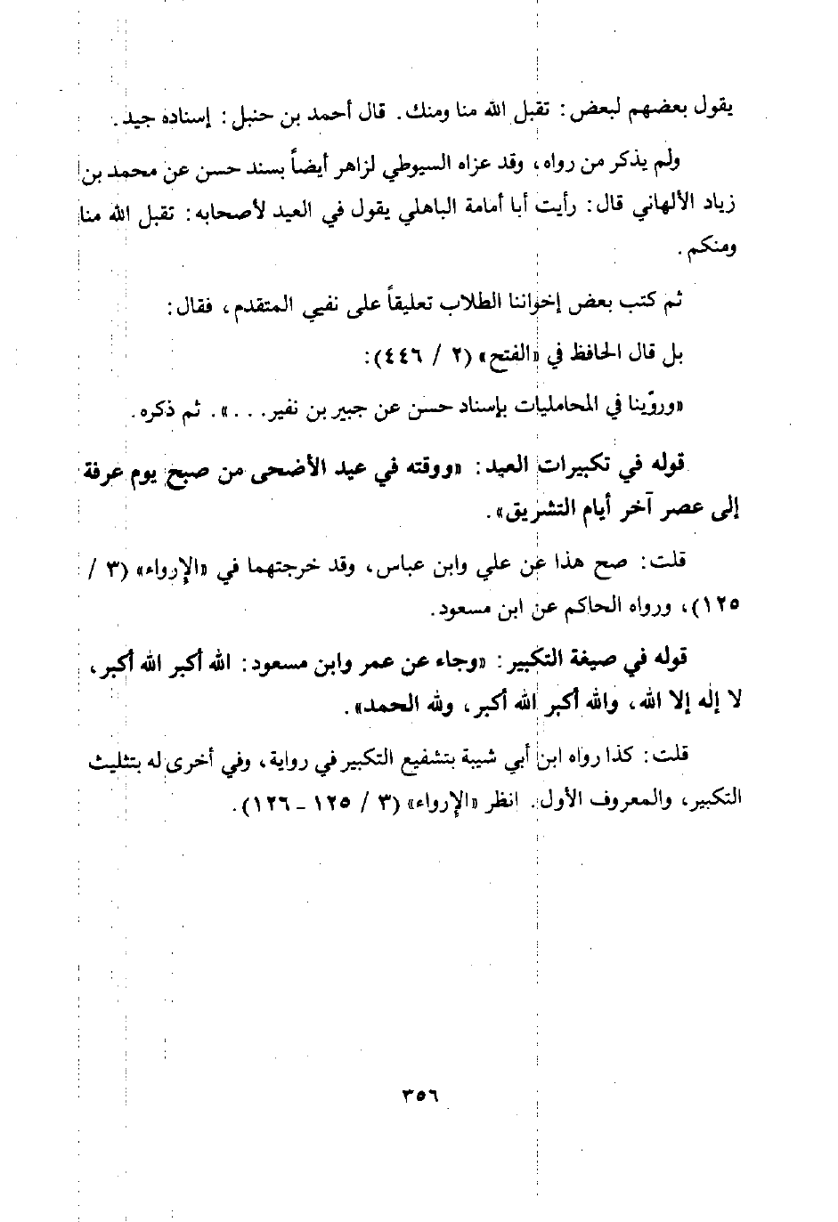 يقول بعضهم لبعض: تقبل الله منا ومنك. قال أحمد بن حنبل: إسناده جيد.