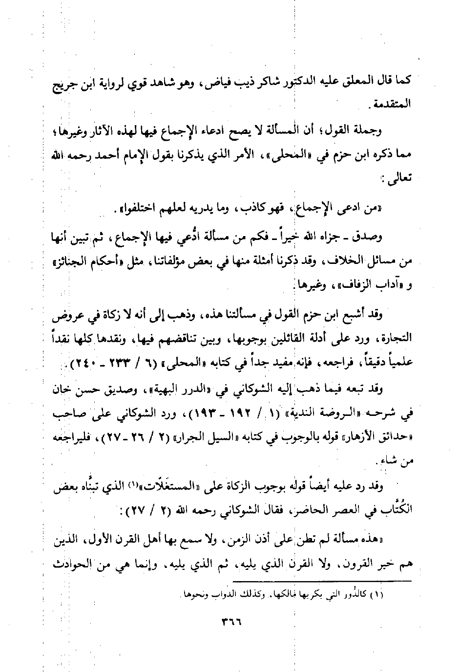وقد رد عليه أيضا قوله بوجوب الزكاة على "المستغلات"1 الذي تبناه بعض الكتاب في العصر الحاضر فقال الشوكاني رحمه الله 2 / 27: