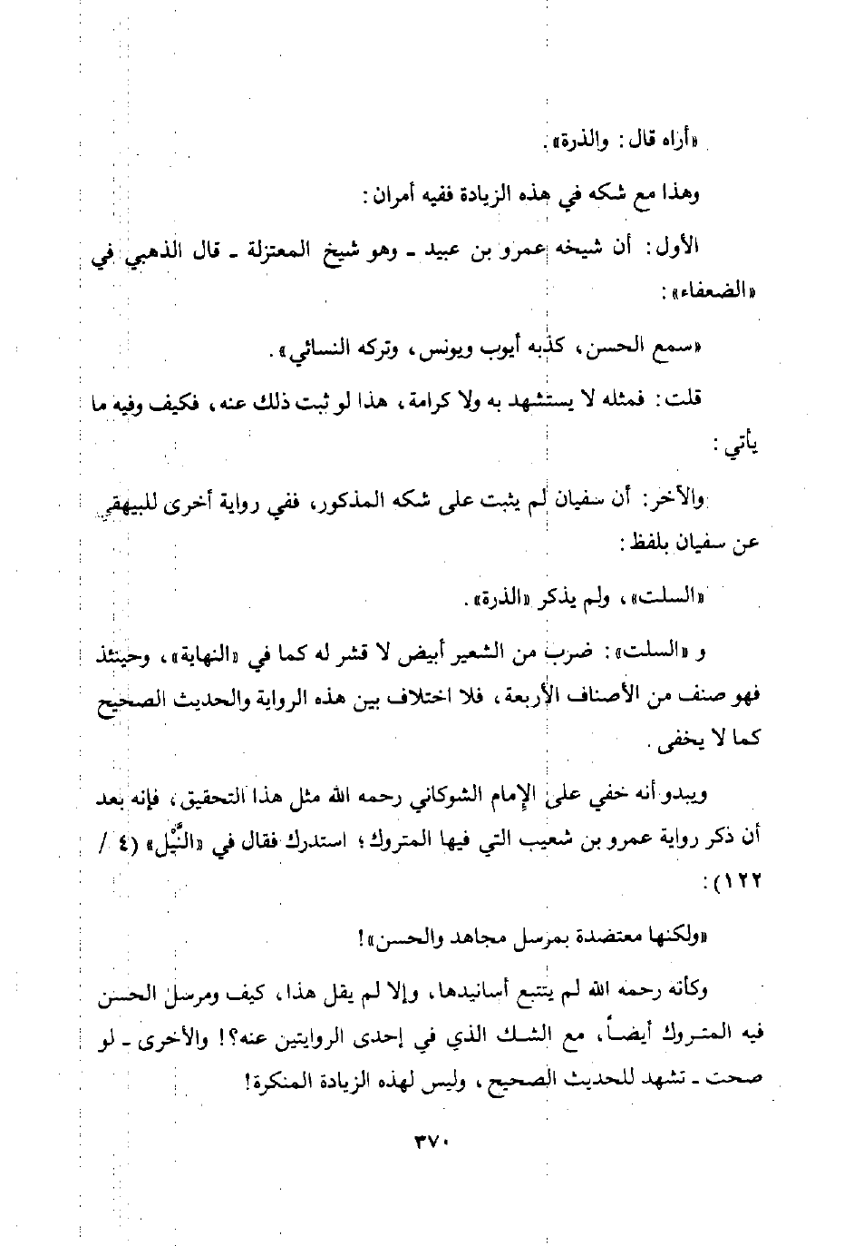 ويبدو أنه خفي على الإمام الشوكاني رحمه الله مثل هذا التحقيق فإنه بعد أن ذكر رواية عمرو بن شعيب التي فيها المتروك استدرك فقال في "النيل" 4 / 122: