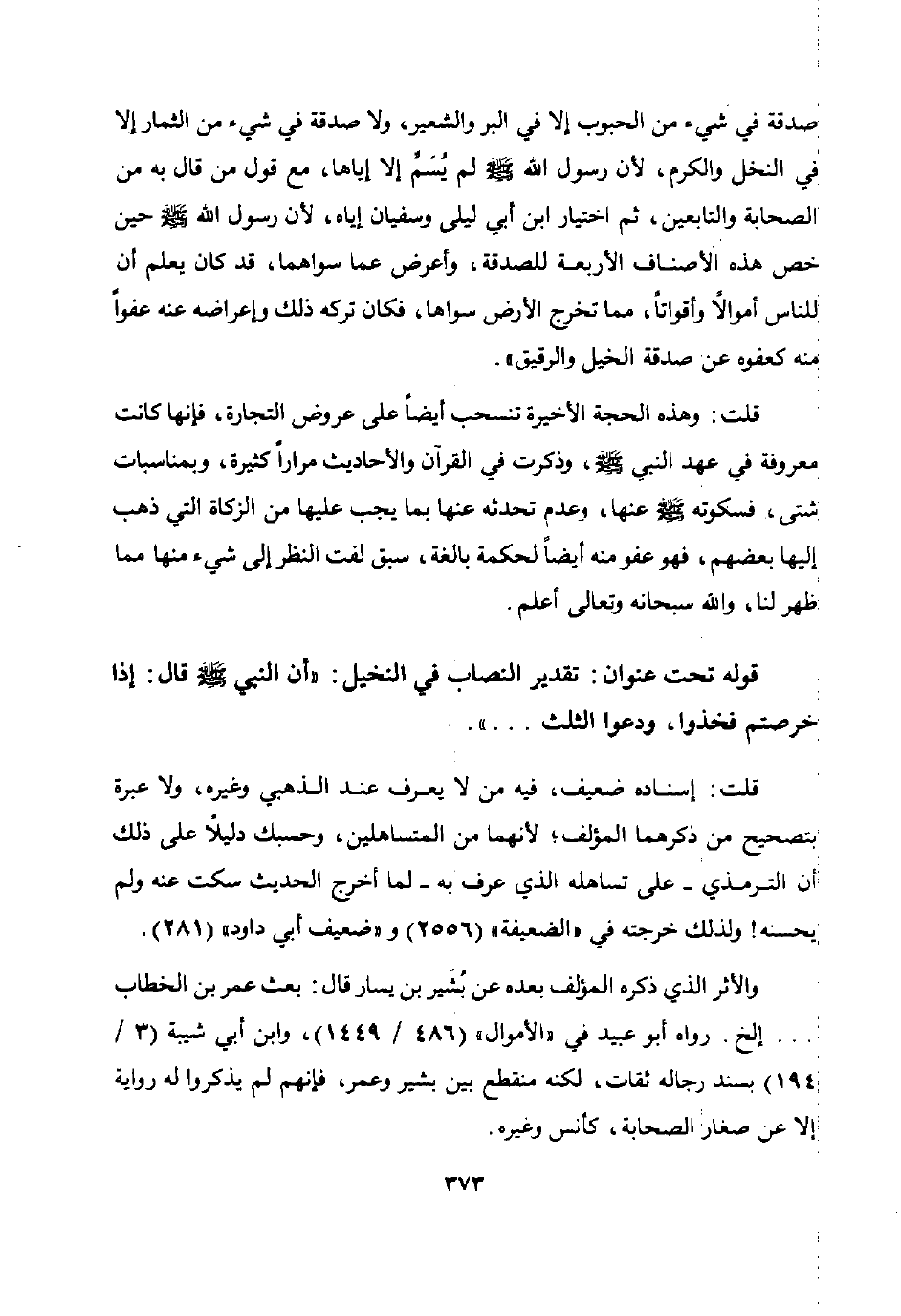 قوله تحت عنوان: تقدير النصاب في النخيل: أن النبي صلى الله عليه وسلم قال: "إذا خرصتم فخذوا ودعوا الثلث ... ".