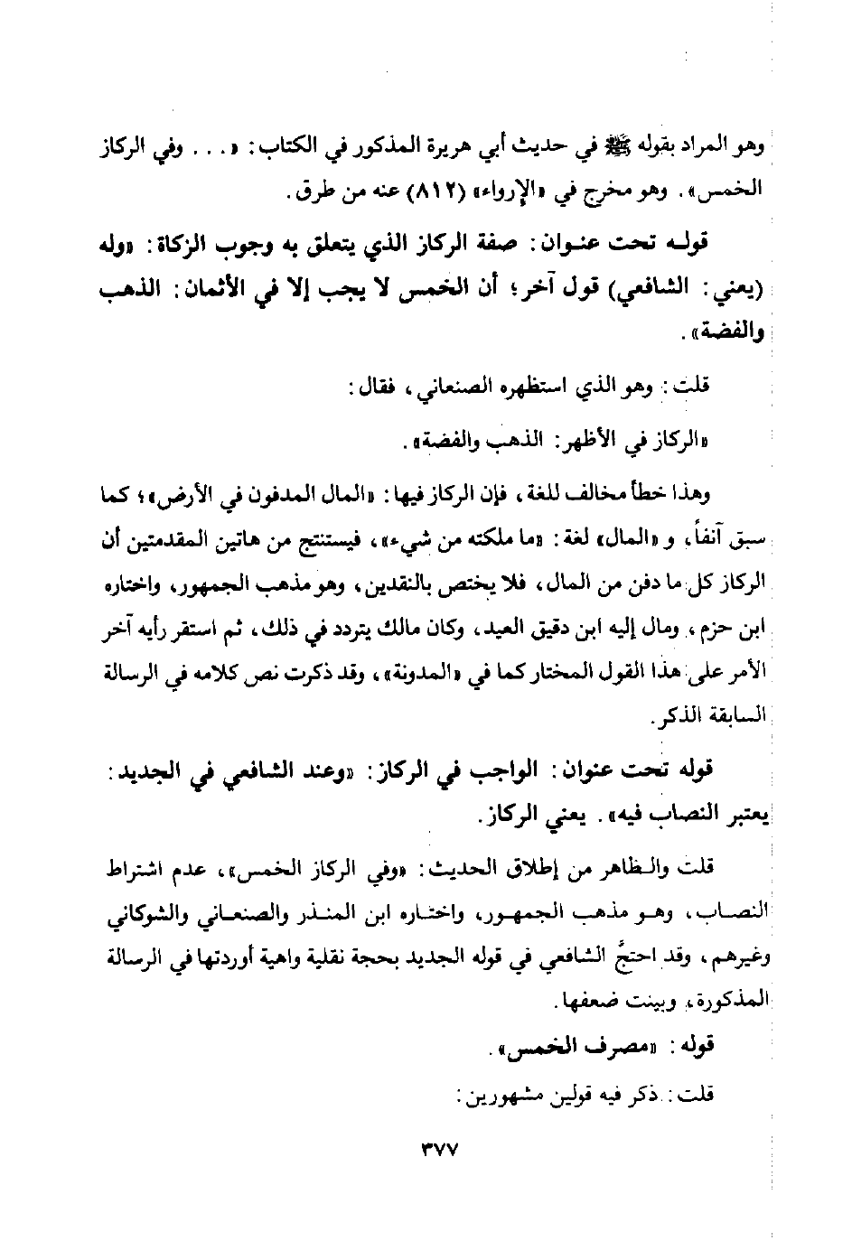 قوله تحت عنوان: صفة الركاز الذي يتعلق به وجوب الزكاة: "وله يعني: الشافعي قول آخر أن الخمس لا يجب في الأثمان: الذهب والفضة".