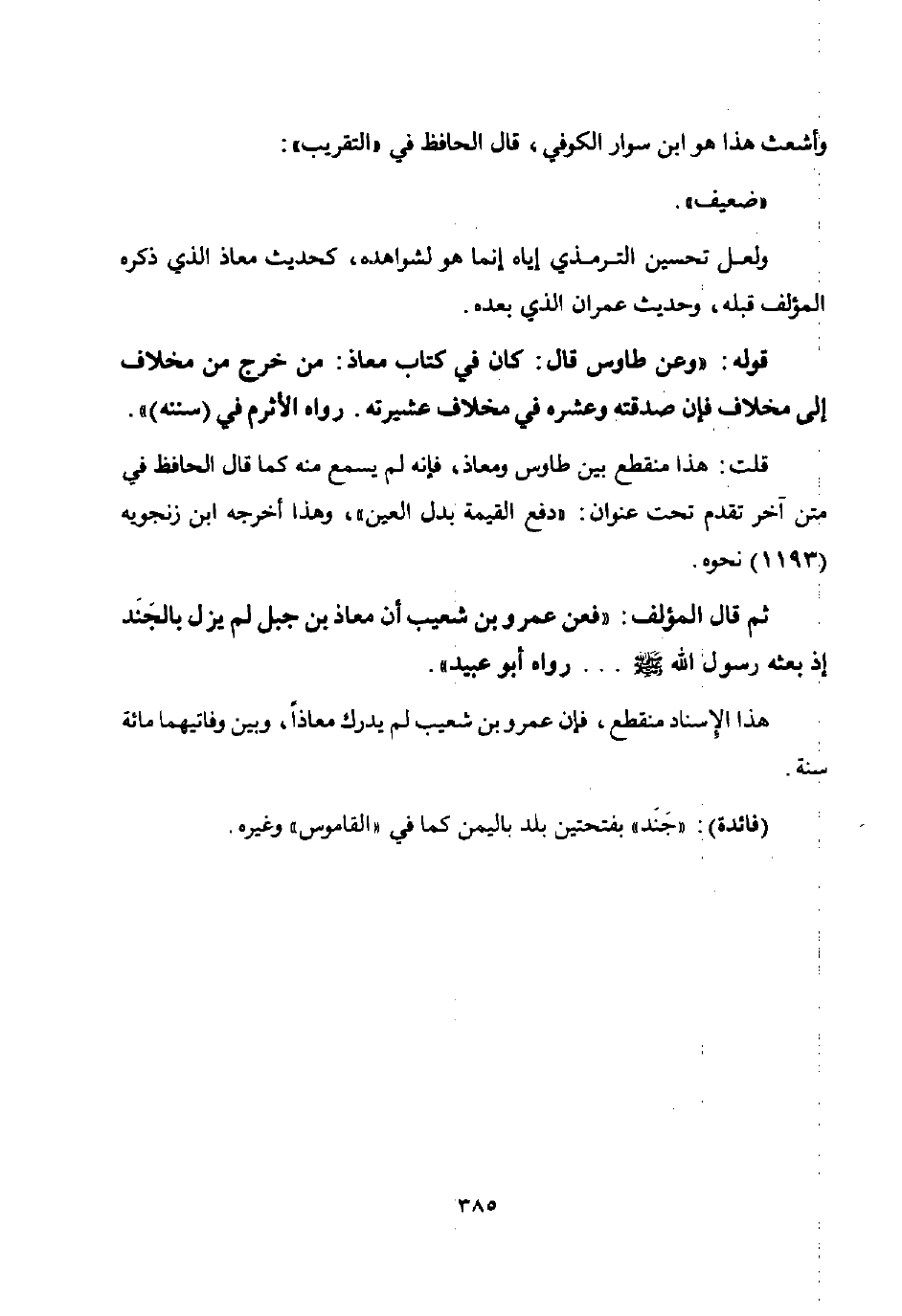 ثم قال المؤلف: "فعن عمرو بن شعيب أن معاذ بن جبل لم يزل بالجند إذ بعثه رسول الله صلى الله عليه وسلم ... رواه أبو عبيد".